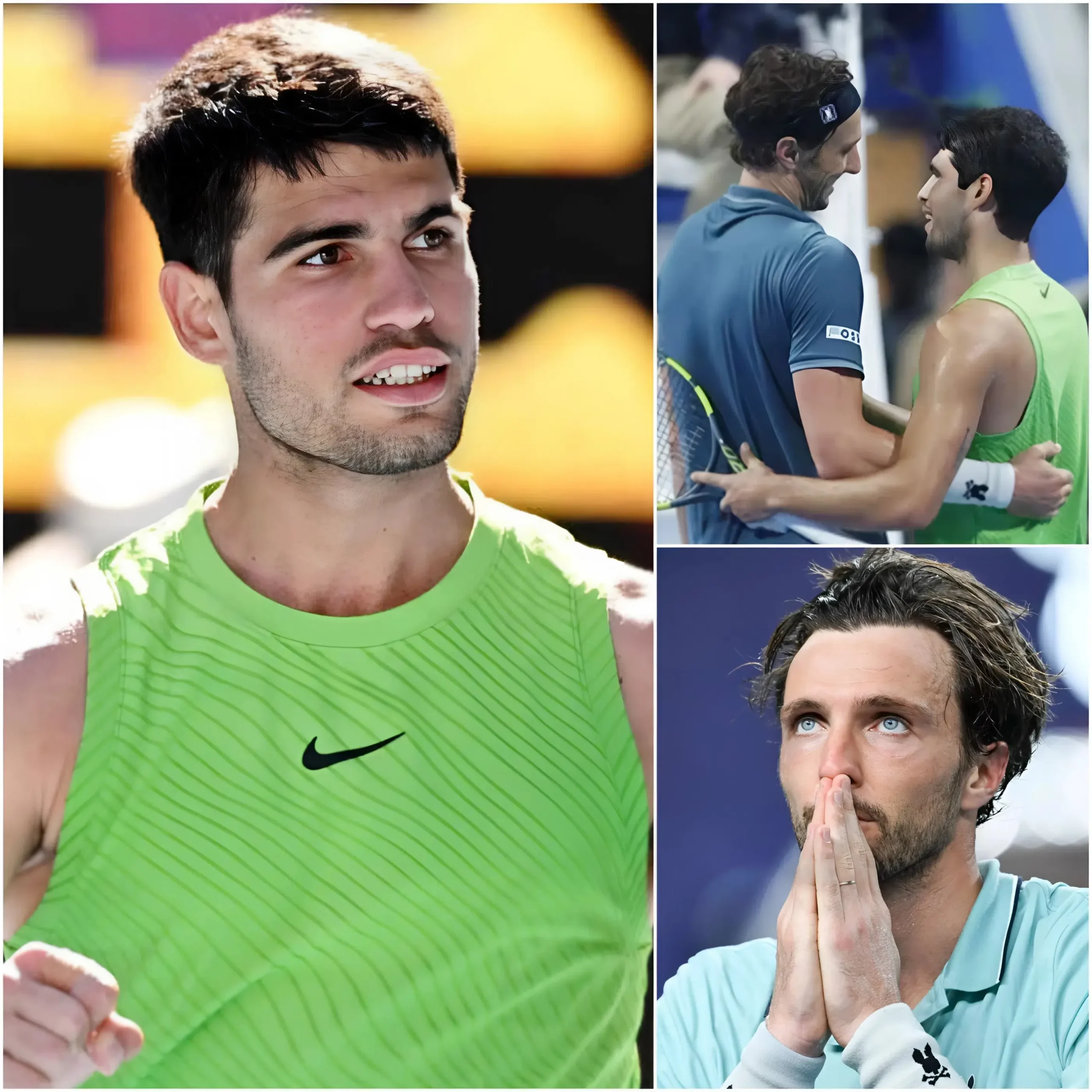 😢🎾 “LO DI TODO… PERO NO FUE SUFICIENTE” — El ambiente en el Qatar Open 2026 se volvió silencioso justo después de que Arthur Rinderknech cayera ante Carlos Alcaraz. En la entrevista rápida tras el partido, el tenista francés confesó: “Me preparé muy bien para este torneo… Tal vez en este momento todavía no soy lo suficientemente consistente como para competir al más alto nivel.” Sus palabras se difundieron rápidamente en las redes sociales, haciendo que muchos aficionados sintieran una profunda tristeza. Pero el momento que realmente dejó al público en silencio llegó justo después. En lugar de abandonar la pista como de costumbre, Alcaraz regresó hacia Rinderknech. Sin discursos largos, el número uno de España simplemente apoyó suavemente una mano sobre el hombro de su rival y le dijo unas breves palabras de ánimo. Rinderknech bajó la cabeza, tratando de contener las lágrimas, y luego se levantó para abrazar con fuerza a Alcaraz. Todo el estadio se puso de pie y aplaudió al unísono.