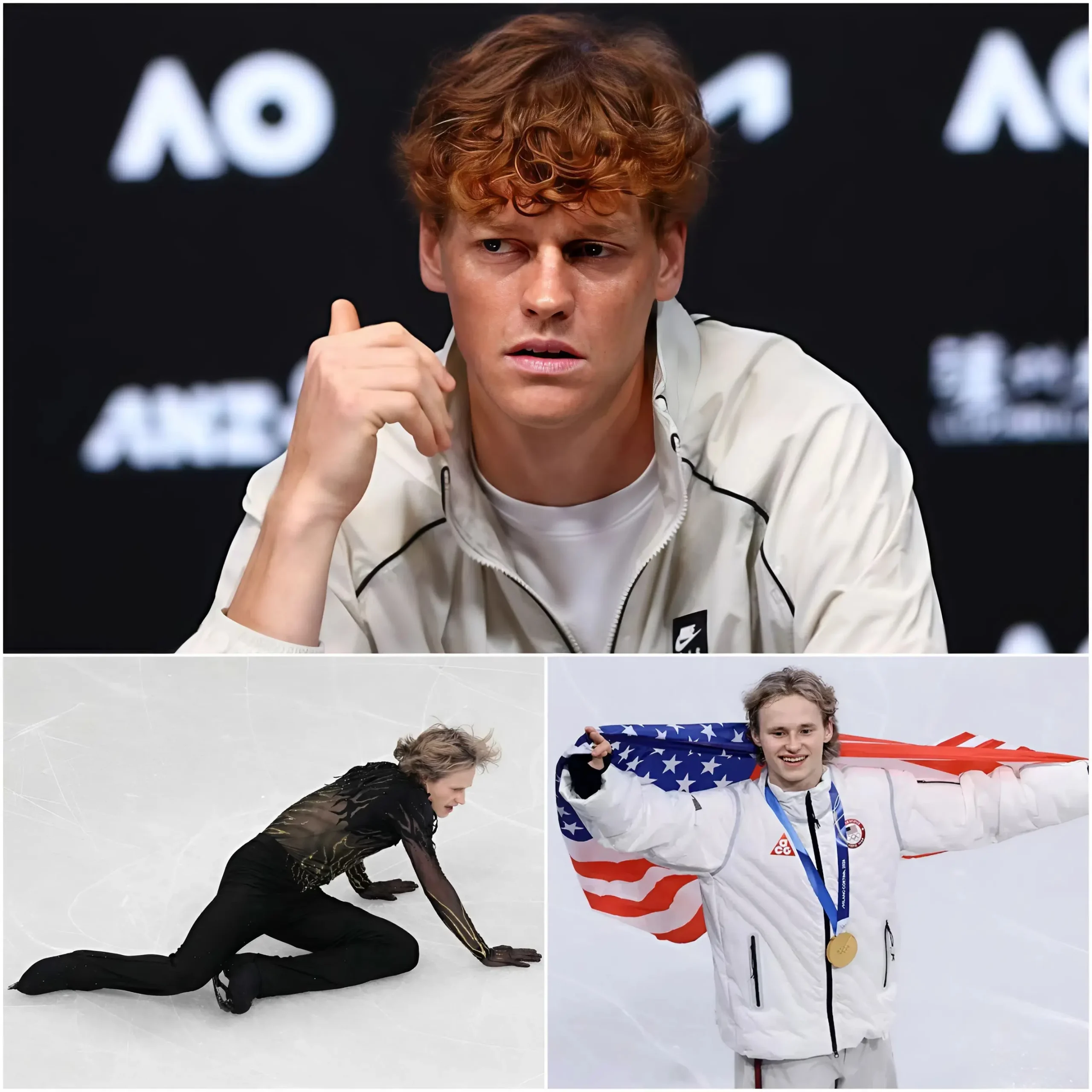 🔥🔥 “Non giudicate una persona solo per una sconfitta.” Jannik Sinner ha condiviso in silenzio quando gli è stato chiesto dello scivolone recente di Ilia Malinin alle 2026 Winter Olympics: “In Ilia non vedo un perdente — vedo un combattente. Così giovane, e già costretto a portare sulle spalle le aspettative di un’intera nazione. Allenamenti estenuanti, notti passate in silenzio sotto pressione, lacrime che nessuno vede…” Sinner ha aggiunto: “Sono proprio quei momenti più bui a creare i veri campioni.” Da quella caduta dolorosa non è nata una sconfitta — ma un nuovo viaggio.