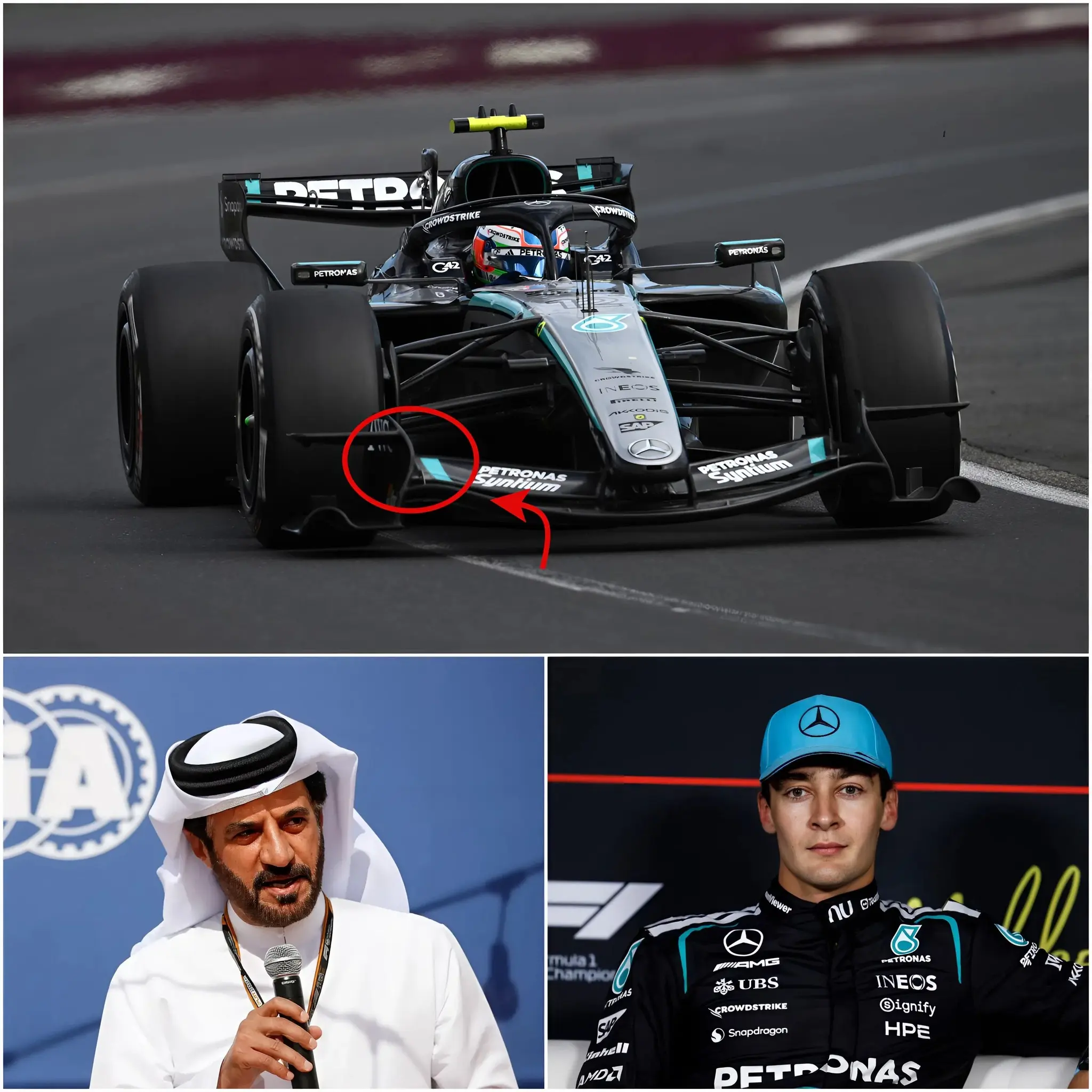 Shortly after the race, images and video clips began circulating on social media that some analysts said showed unusual details on Russell’s car. Some technical experts noted that certain elements of the car may not have fully complied with Formula 1’s strict technical rules.