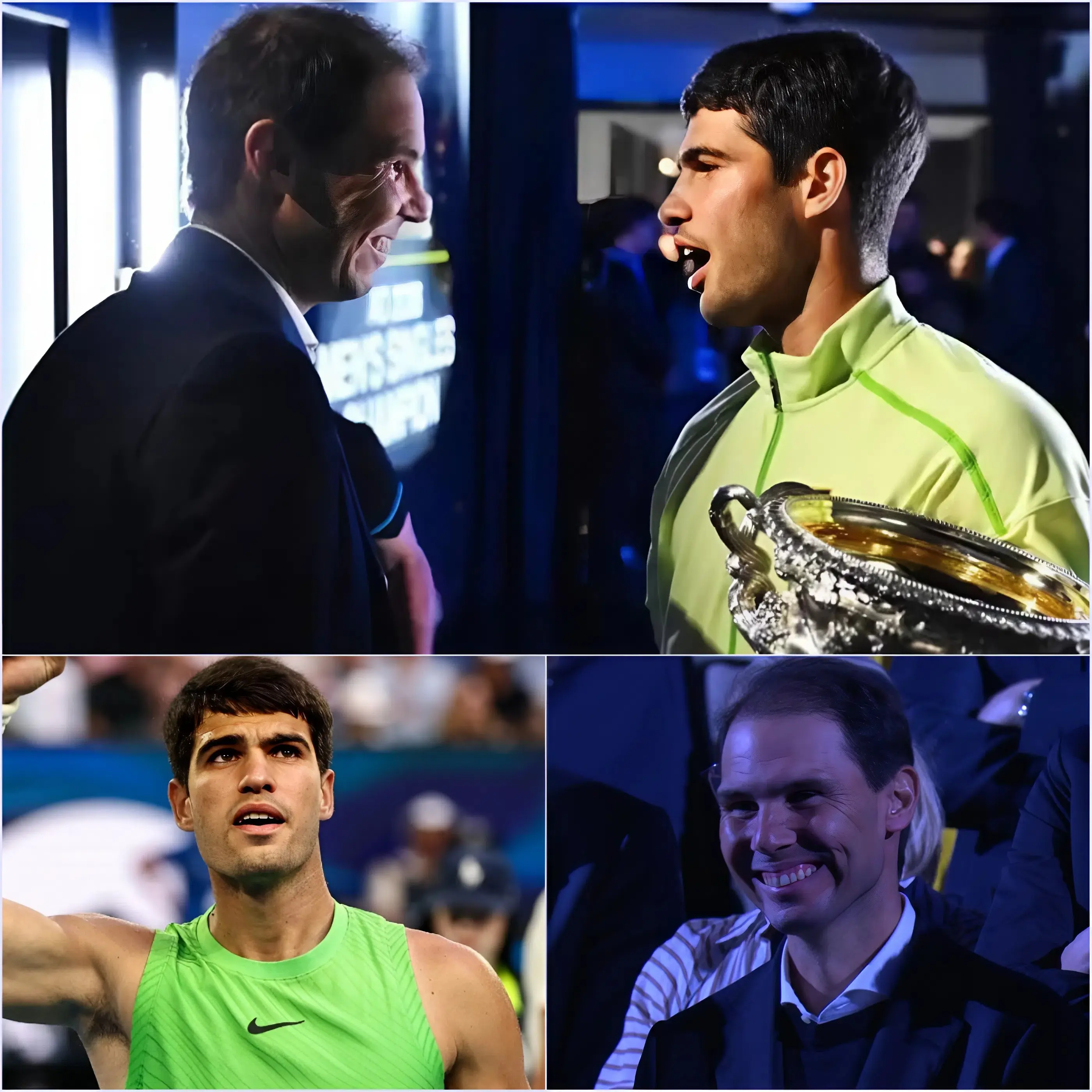 Then came the moment no one expected. As the ceremony neared its end, Nadal responded. His reaction was not loud, not theatrical, but it was sharp, direct, and emotionally piercing. Speaking briefly, Nadal thanked Alcaraz for his words but shifted the tone with characteristic intensity. He reminded everyone that while chapters end, responsibility begins. “I’m not on the court anymore,” Nadal said, “but this sport doesn’t miss fighters. It demands them.” The statement landed heavily, drawing a mix of applause and stunned silence.