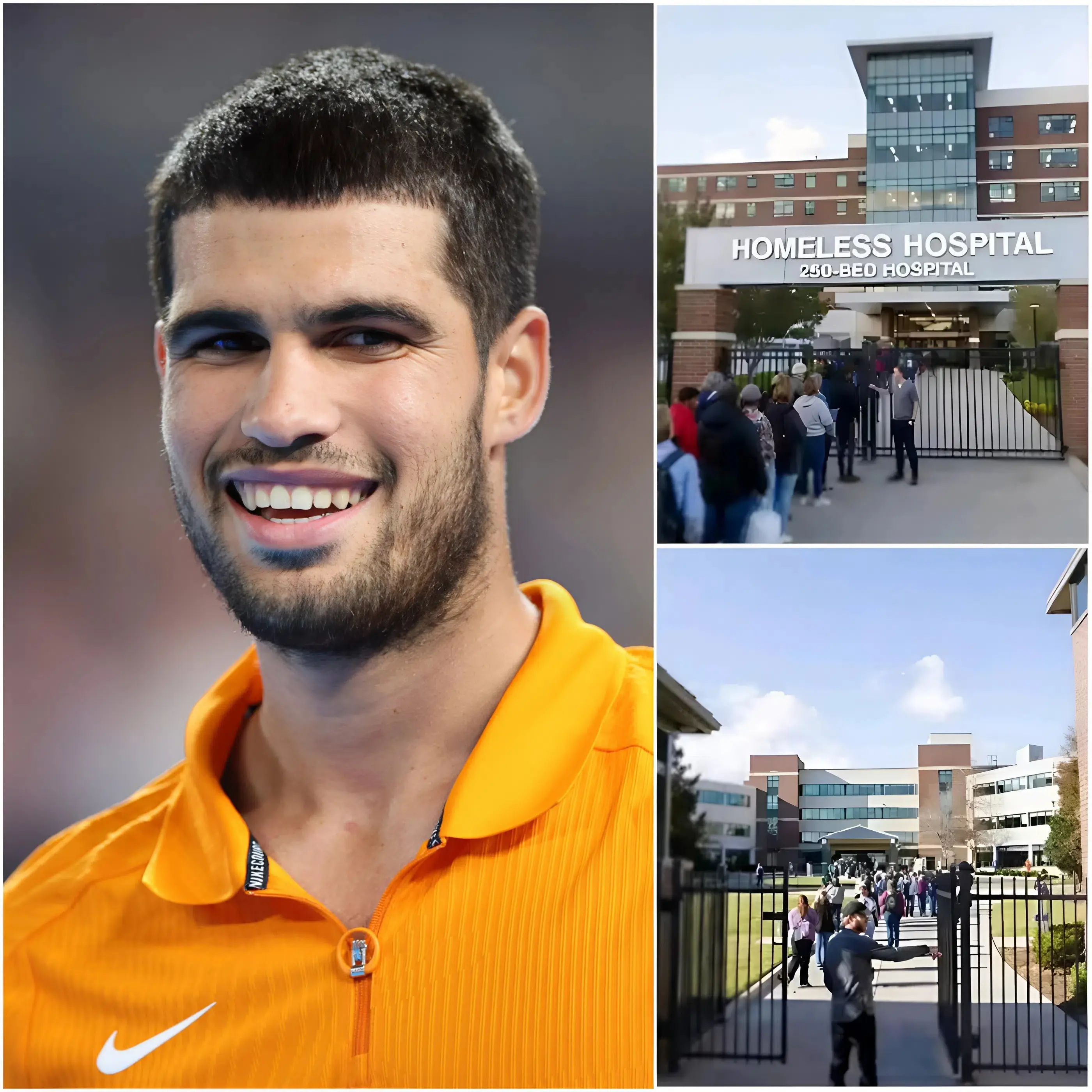 ❤️ At 5 a.m., in the biting cold, Carlos Alcaraz personally opened the doors of a hospital: NO cameras, NO ribbon-cutting, NO applause… 250 beds, FREE FOREVER, reserved exclusively for homeless people and vulnerable families — something never before seen in Murcia. The place, once forgotten, has now been “revived” by the tennis champion. “Trophies are just metal… This is the legacy I want to leave in history,” he whispered, leaving millions speechless. Hashtags exploded across social media, and tears were shed everywhere.