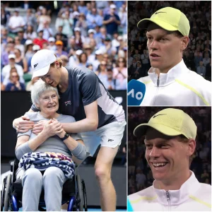 Il momento che ha fatto tacere l’intero stadio tra le lacrime… Jannik Sinner si è improvvisamente fermato nel mezzo di una partita di altissimo livello all’Australian Open 2026, correndo dritto verso una donna di 72 anni in sedia a rotelle – colei che aveva venduto tutti i suoi cimeli pur di incontrare il suo idolo un’ultima volta. Un abbraccio strettissimo, un sussurro…