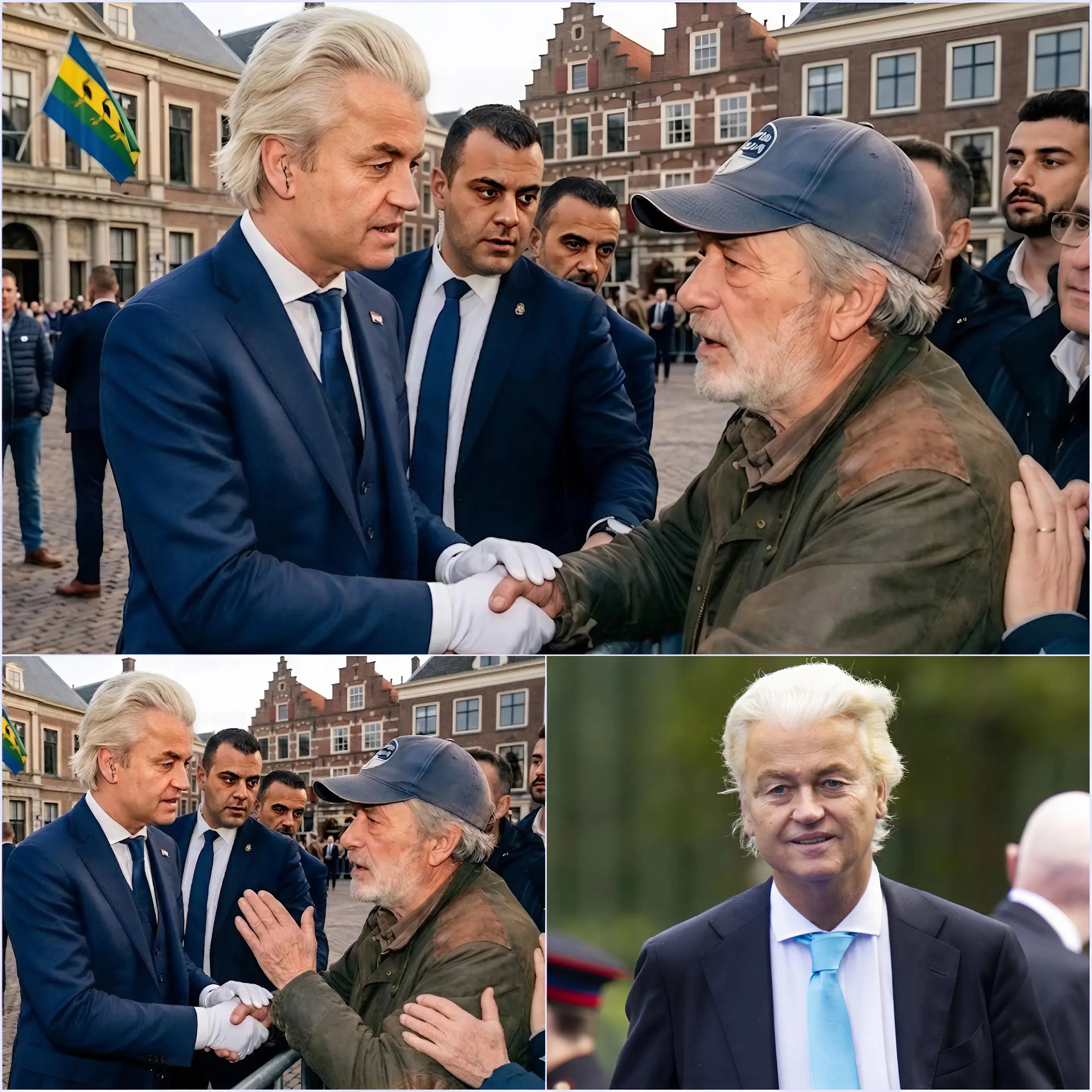 De man kreeg de ruimte om dichterbij te komen. Zijn stappen waren voorzichtig, bijna onzeker, alsof hij zelf niet had verwacht zo ver te komen. Toen hij eindelijk binnen gehoorafstand van Wilders stond, leek de tijd even stil te staan. Alle ogen waren op hen gericht.