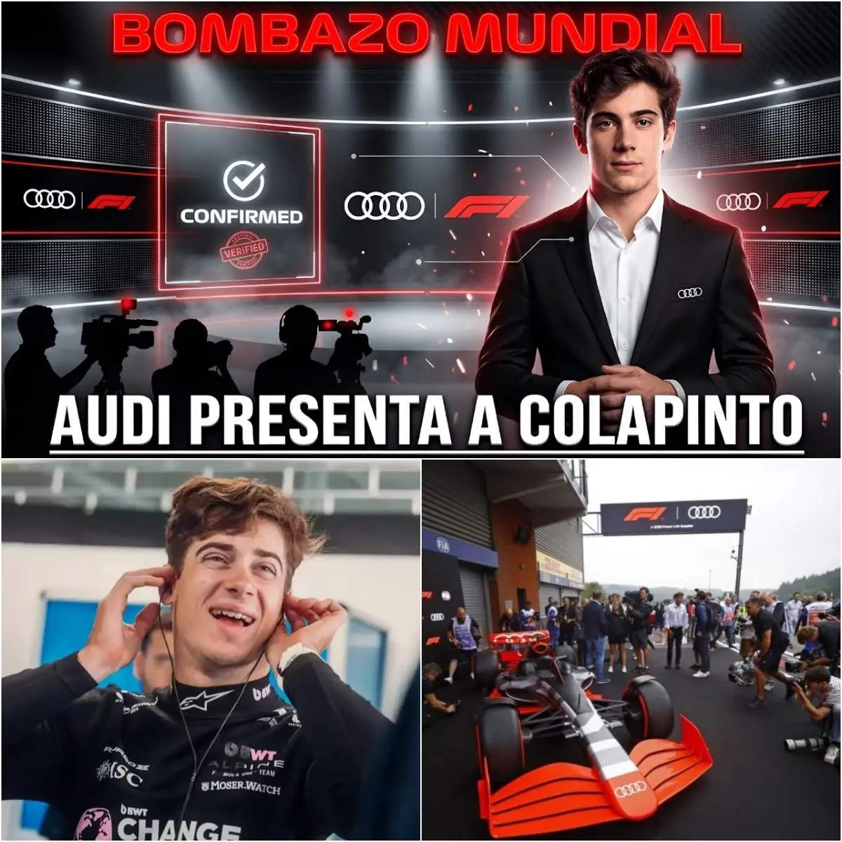 Recientemente circuló un mensaje viral que anunciaba a bombo y platillo: “¡BOMBAZO MUNDIAL! AUDI PRESENTARÁ A COLAPINTO TRAS SU GRAN NIVEL: FICHAJE CONFIRMADO HOY YA”. Este tipo de afirmaciones, acompañadas de emojis de alerta y fuego, generan ilusión inmediata entre los fans argentinos y latinoamericanos, pero la realidad del paddock cuenta una historia muy distinta.