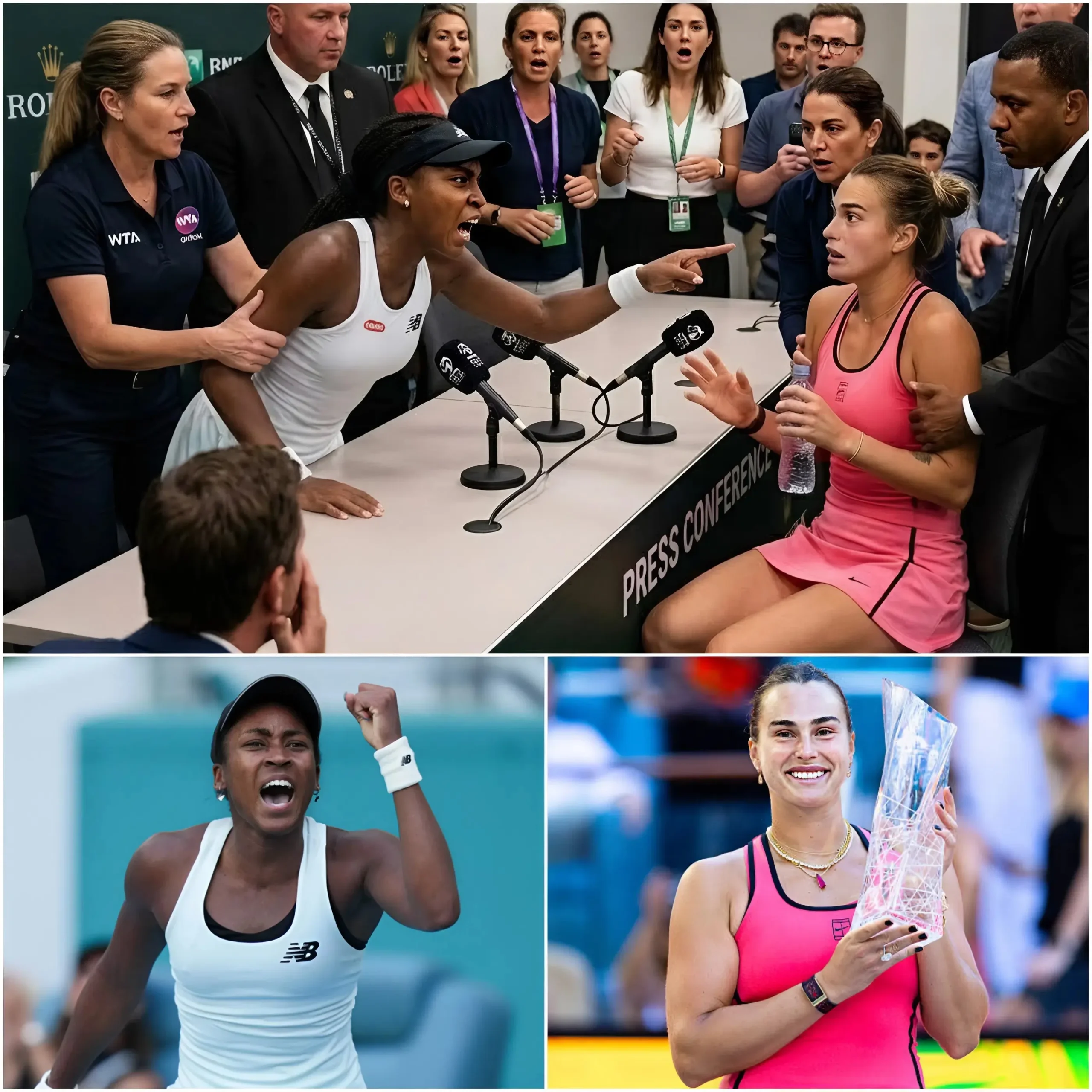 🚨 “¡TRAMPOSA!” — Coco Gauff explota de furia justo después de la final del Miami Open y se lanza a confrontar directamente a Aryna Sabalenka, acusando a la número 1 del mundo de usar tecnología de apoyo ilegal — los árbitros y oficiales irrumpen de inmediato para inspeccionar la raqueta y el equipo de Sabalenka mientras el resultado causa conmoción y sacude a toda la comunidad del tenis 🔥