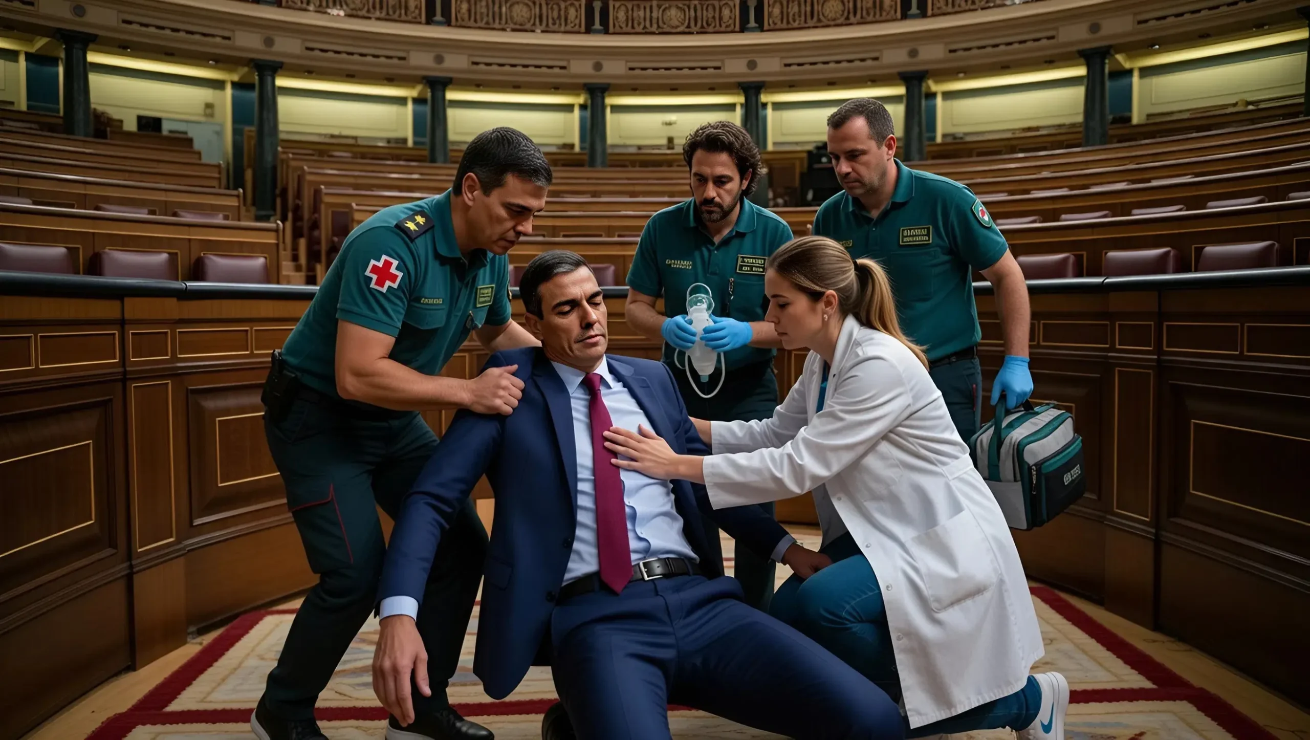 La sesión parlamentaria en Madrid se convirtió en un momento de enorme tensión cuando, según este escenario ficticio, el presidente del gobierno español, Pedro Sánchez, se desplomó repentinamente tras abandonar…