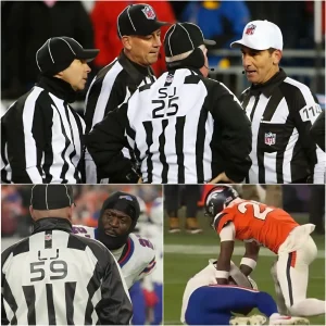 Four referees who officiated the game between the Buffalo Bills and Denver Broncos have been suspended pending investigation after the NFL discovered they overlooked multiple Broncos violations that significantly affected the outcome of the game, causing the Bills to unfairly lose.