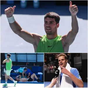 💗 Après la fin du match, au lieu de se limiter à une poignée de main protocolaire et de quitter le court, Carlos Alcaraz a fait quelque chose de totalement inattendu et profondément émouvant avec Yannick Hanfmann. Alcaraz a déclaré : « Je savais qu’il était blessé et qu’il ne pouvait pas jouer à cent pour cent, mais ce qu’il a montré pendant le match m’a vraiment impressionné. » C’est une image rare et magnifique de l’esprit sportif dans un tournoi du Grand Chelem : le vainqueur ne se contente pas de respecter son adversaire, il partage aussi sa douleur comme le ferait un véritable ami. Encore visiblement affecté, les yeux rougis par les larmes et le poignet douloureux, Hanfmann a répondu au geste chaleureux d’Alcaraz par 11 mots brefs mais remplis d’affection et d’admiration.