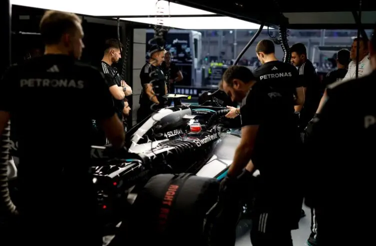 Mais la situation ne s’est pas arrêtée là. Ce qui a choqué encore plus les observateurs, c’est la manière dont George Russell a réagi à cette déclaration. Après le commentaire de Wolff, beaucoup s’attendaient à une réaction publique de la part de Russell, peut-être une explication ou une tentative de justification de sa décision. Pourtant, ce qui s’est passé dans le garage de Mercedes quelques heures plus tard a laissé tout le monde sans voix. Russell, normalement perçu comme un pilote calme et réfléchi, est resté totalement silencieux et ne s’est pas exprimé davantage sur le sujet.