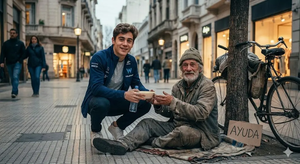 En conclusión, el gesto de Franco Colapinto al detenerse para ayudar a un hombre sin hogar en su camino a casa tras un día lleno de emociones deportivas y en el marco de la Pascua se ha convertido en un símbolo de humanidad, solidaridad y bondad. La historia ha conmovido a quienes la presenciaron directamente y a millones en las redes sociales, recordándonos que incluso los actos más sencillos tienen el poder de generar un impacto profundo y duradero.