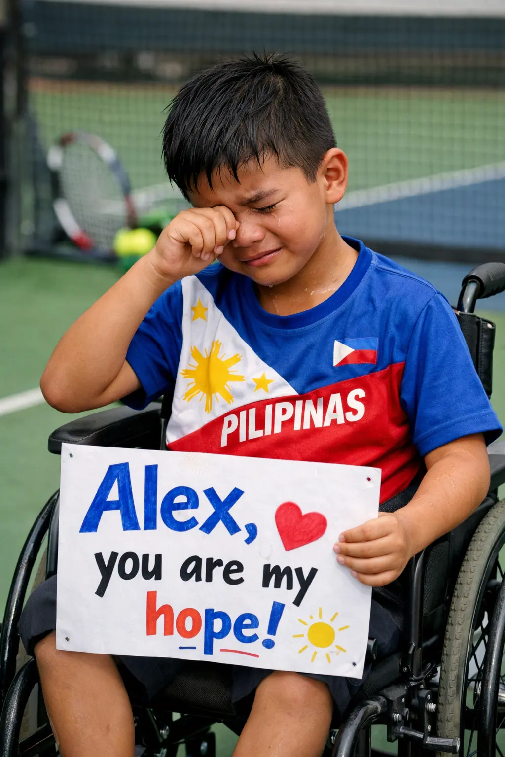 The young boy had flown from the Philippines with his family despite severe financial hardship. Living with a physical disability and relying on a wheelchair, he had endured years of bullying at school. Yet through it all, he found strength watching Alex Eala compete on the global stage.