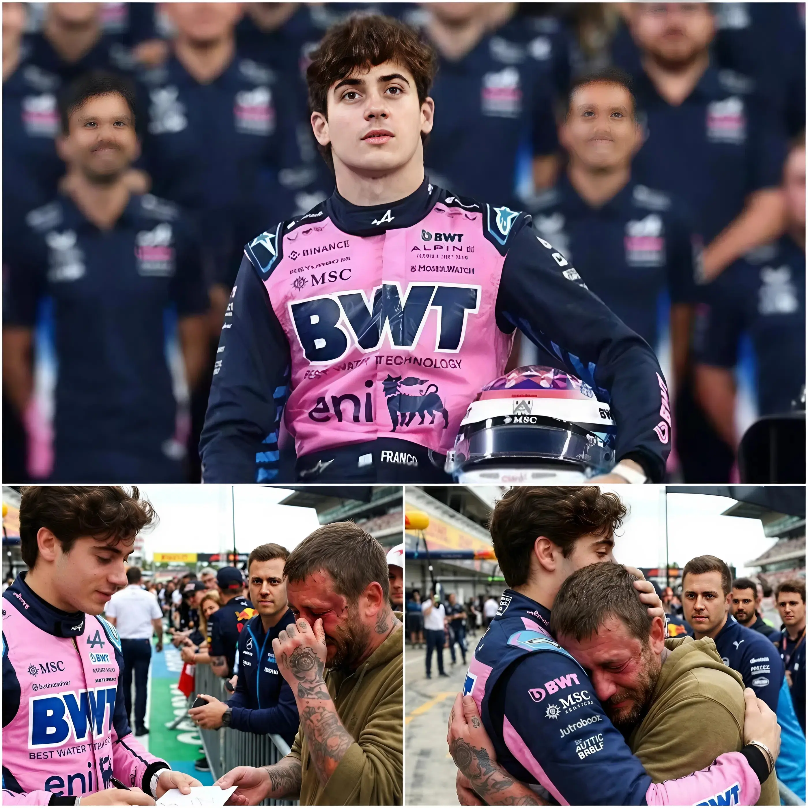El momento ocurrió durante un encuentro con aficionados que inicialmente parecía ser un evento sencillo y rutinario. El joven piloto argentino Franco Colapinto, una de las nuevas caras más prometedoras del automovilismo internacional, estaba saludando a seguidores y firmando autógrafos cuando una escena inesperada captó la atención de todos los presentes. Lo que comenzó como una situación aparentemente tensa terminó convirtiéndose en una historia profundamente emotiva que muchos testigos aseguran que nunca olvidarán.