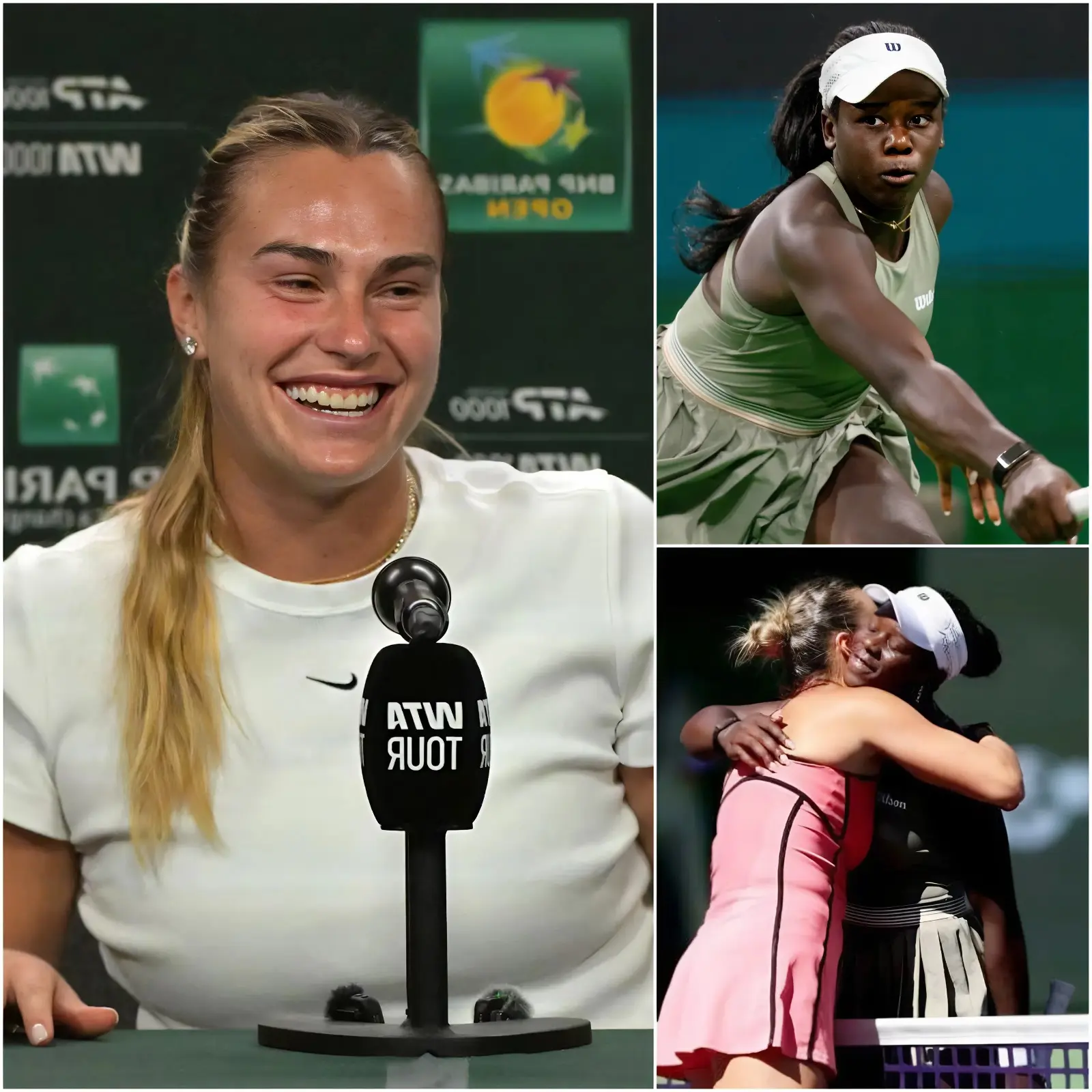 Lors de l’interview d’après-match, Sabalenka a soudainement déclaré devant les journalistes et les fans : « Elle est une future championne de Grand Chelem. » Cette phrase a provoqué une réaction immédiate dans le stade et sur les réseaux sociaux, où les clips de l’interview ont commencé à circuler rapidement.