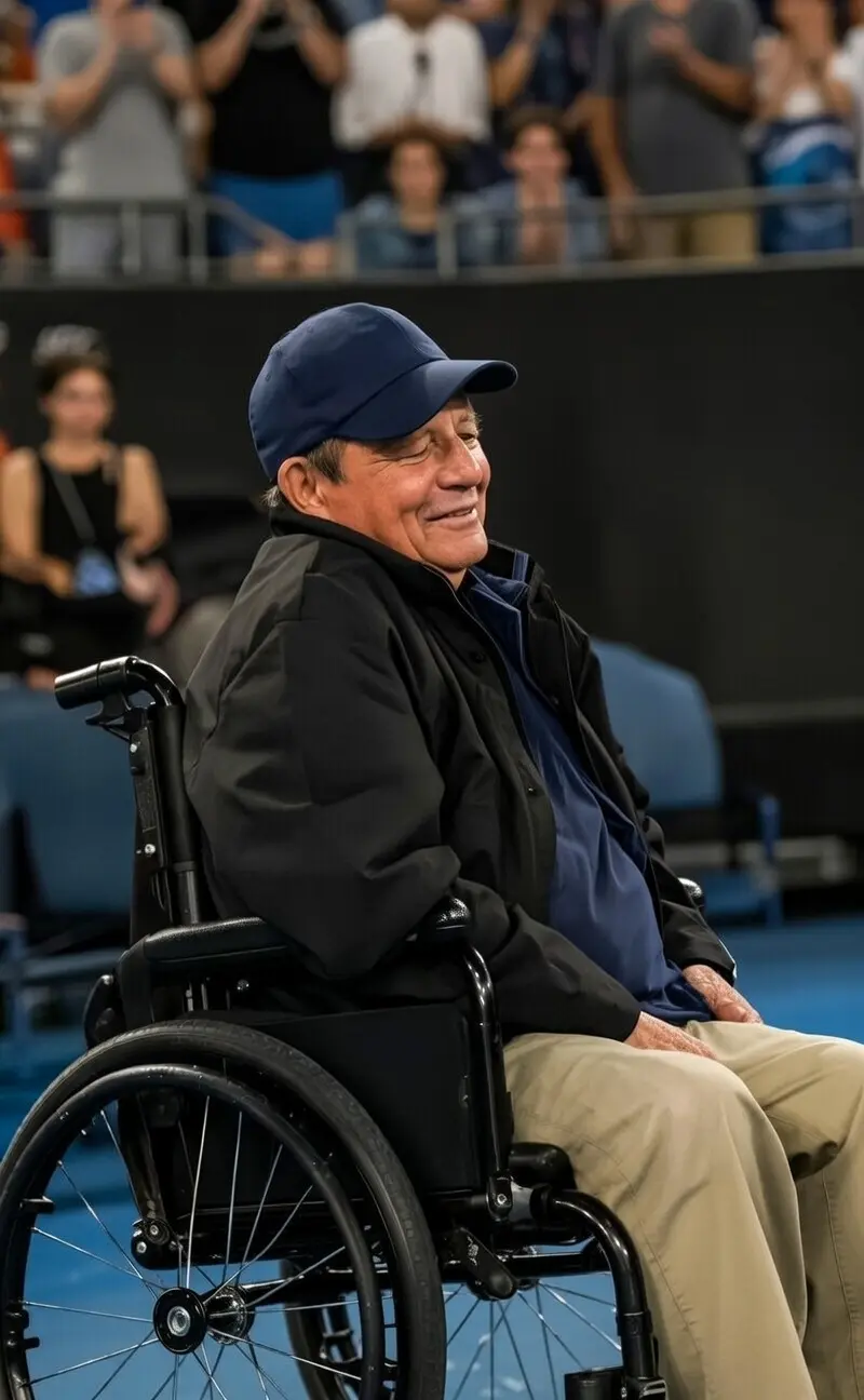 En un pequeño rincón de la cancha número 6 del Abierto de Australia 2026, lejos de los palcos y de los focos principales, se vivió uno de esos momentos que recuerdan por qué el deporte puede ser profundamente humano. Entre la multitud que vitoreaba sin descanso, estaba sentado Marco, un hombre en silla de ruedas, con una pequeña pancarta sostenida entre manos temblorosas. Venía de Barcelona, España, y cargaba con una historia silenciosa que nadie a su alrededor conocía del todo.