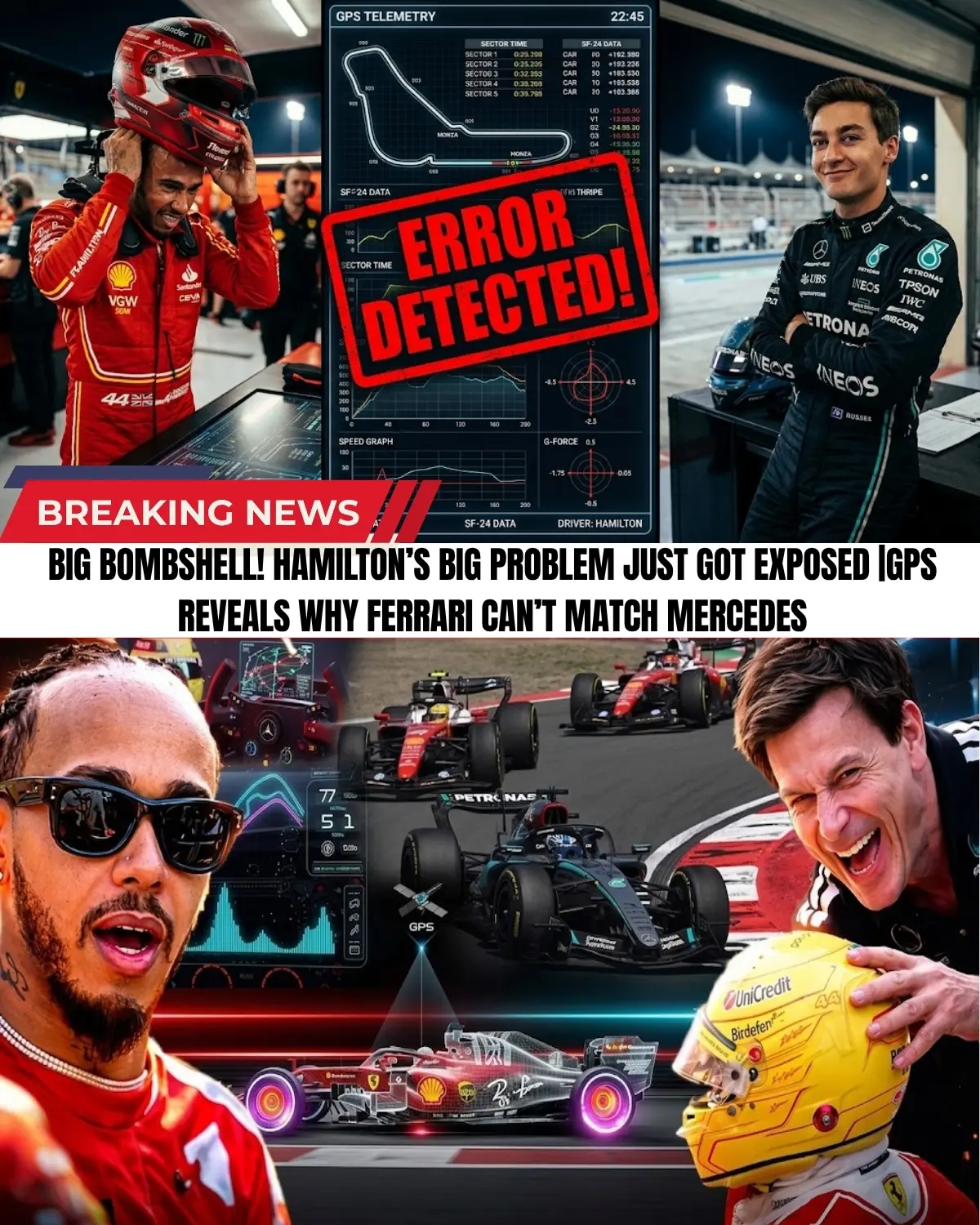 🚨🏎️ F1 STORM: Ferrari’s internal secrets exposed, Mercedes seizes total advantage! The 2026 season is reaching a boiling point as a supposedly “top-secret” GPS data leak has suddenly surfaced, revealing a critical weakness in the Ferrari SF26.