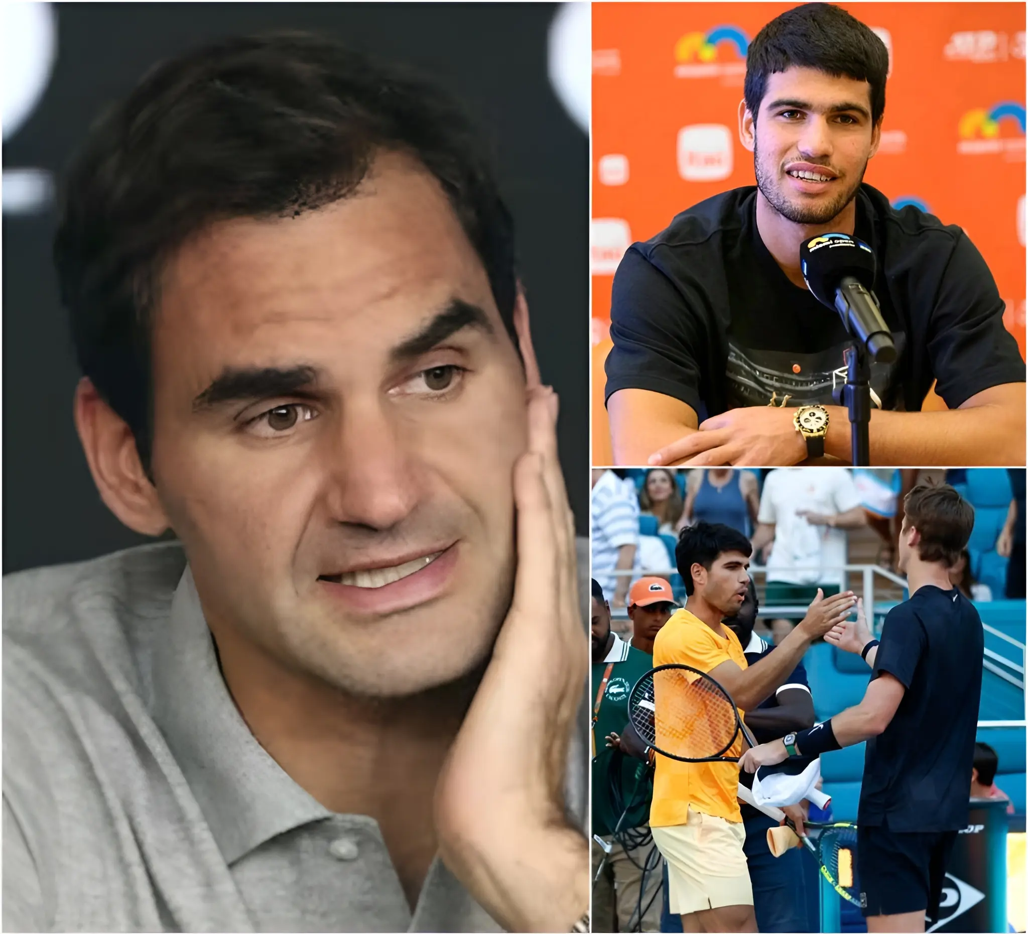 “Francamente, ya es suficiente. Lo que está pasando con Carlos Alcaraz en este momento es una auténtica vergüenza y completamente inaceptable.” Roger Federer ha alzado la voz tras la sorprendente derrota en el Miami Open, donde una ola de duras críticas por parte de los aficionados se volcó rápidamente contra el joven español. Con un tono firme y sin rodeos, Federer defendió públicamente a Alcaraz, pidiendo respeto y perspectiva, y su contundente declaración ha sacudido a todo el mundo del tenis 👇👇👇