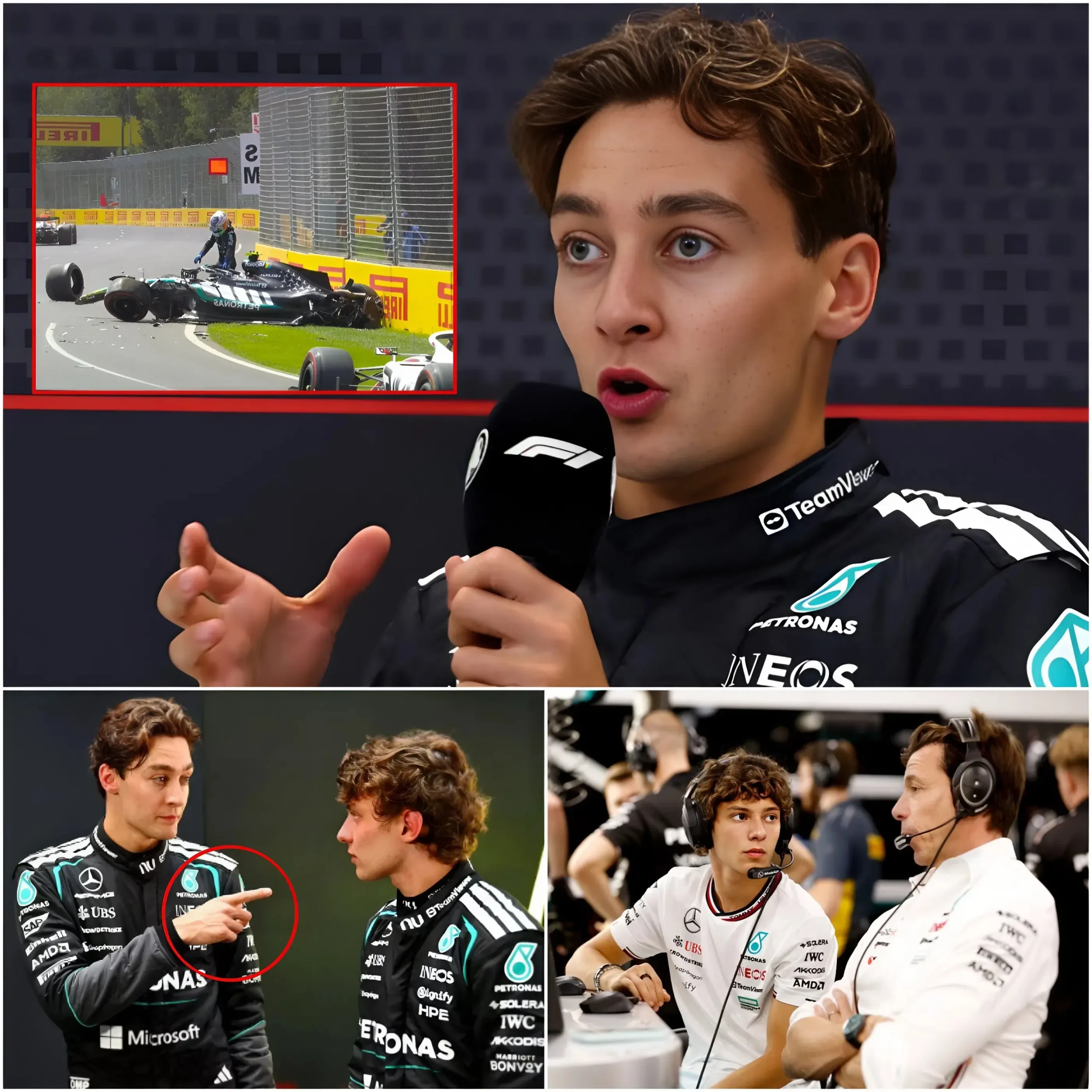 🔴 “THEY DESTROYED ME — IT’S TIME I FINALLY SPEAK OUT” — George Russell shocked the F1 world when he publicly accused the Mercedes-AMG Petronas Formula One Team of favoritism towards Kimi Antonelli in a tense interview. He revealed previously undisclosed behind-the-scenes details, leaving fans stunned. But what shocked everyone even more was Toto Wolff’s cold reaction just minutes later…