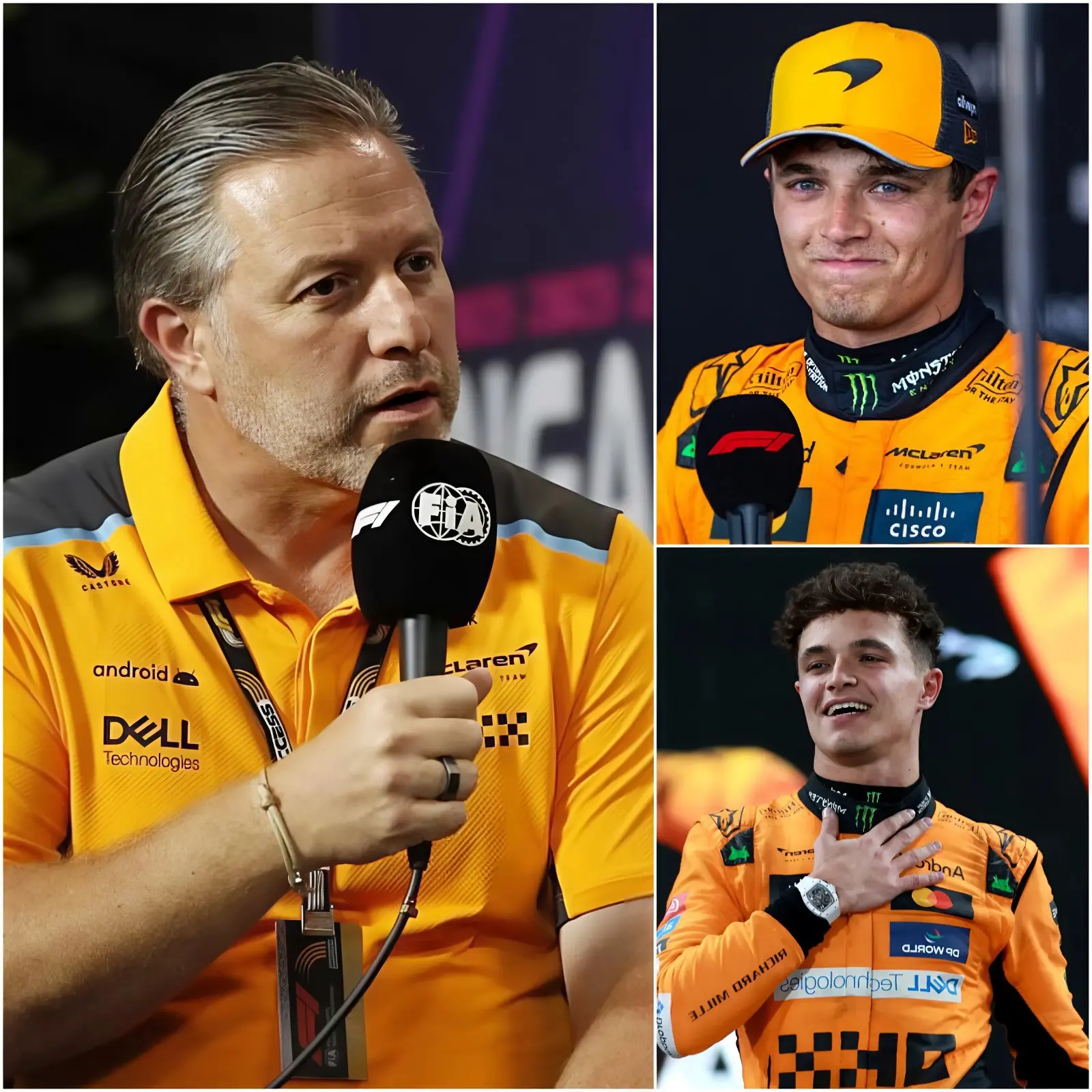 “If they dare attack him, they shouldn’t watch racing ever again!” Those were the explosive words delivered by McLaren team principal Zak Brown as he launched a fierce and emotional defense of Lando Norris. In a sport where pressure is relentless and scrutiny unforgiving, Brown’s passionate statement sent shockwaves through the Formula 1 paddock and across social media platforms worldwide.
