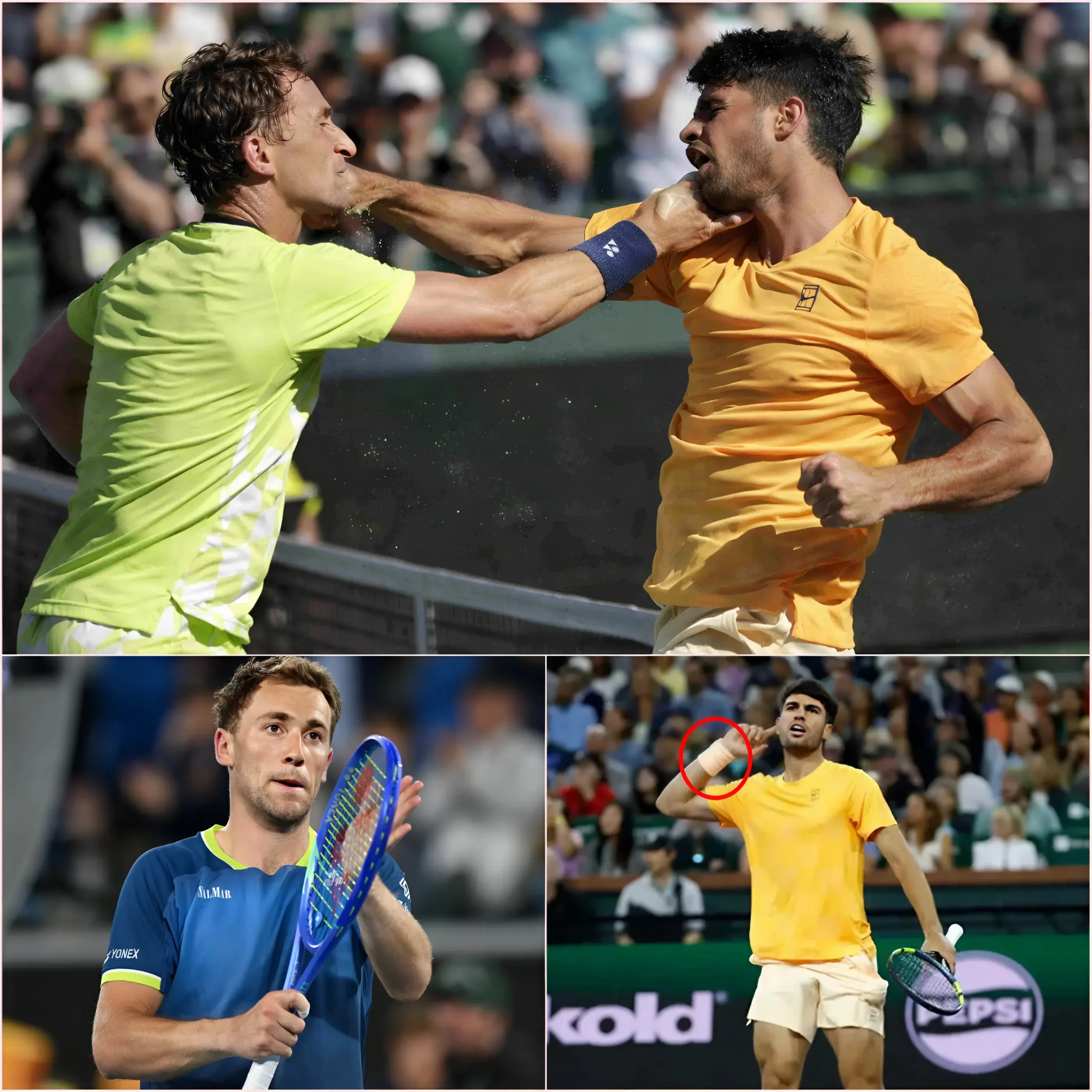 Just as she began walking toward the tunnel exit, preparing to leave the court quietly, an unexpected commotion erupted near the lower section of the stands. A young man suddenly rushed down the stairs toward the barrier separating spectators from the players’ pathway.