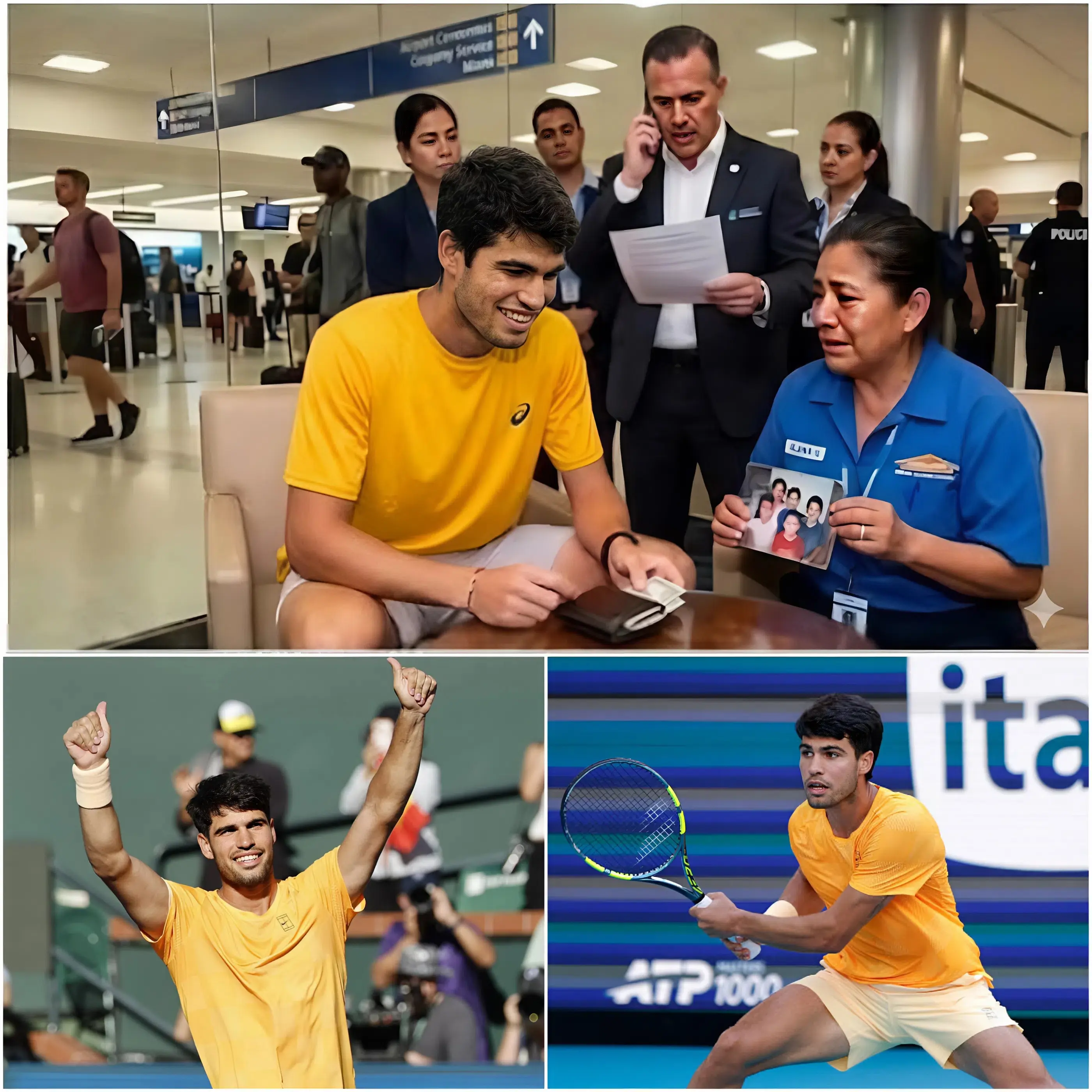 Horas más tarde, el dueño de la cartera fue localizado. Se trataba de Carlos Alcaraz, una de las figuras más destacadas del tenis mundial. Había pasado por la sala VIP sin notar que había olvidado uno de sus objetos personales más importantes.