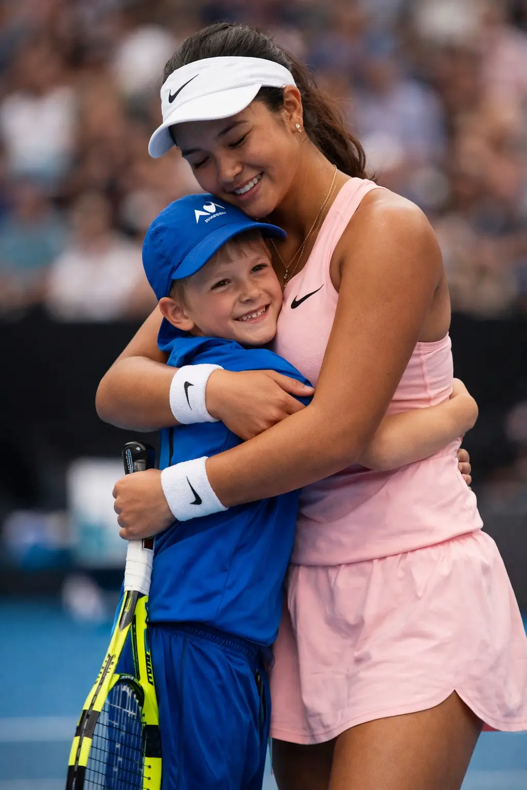 Then came the moment that would soon dominate highlight reels and social media timelines around the world. After listening to Eala’s words, the boy suddenly leaned forward and wrapped his arms around her in a tight hug.