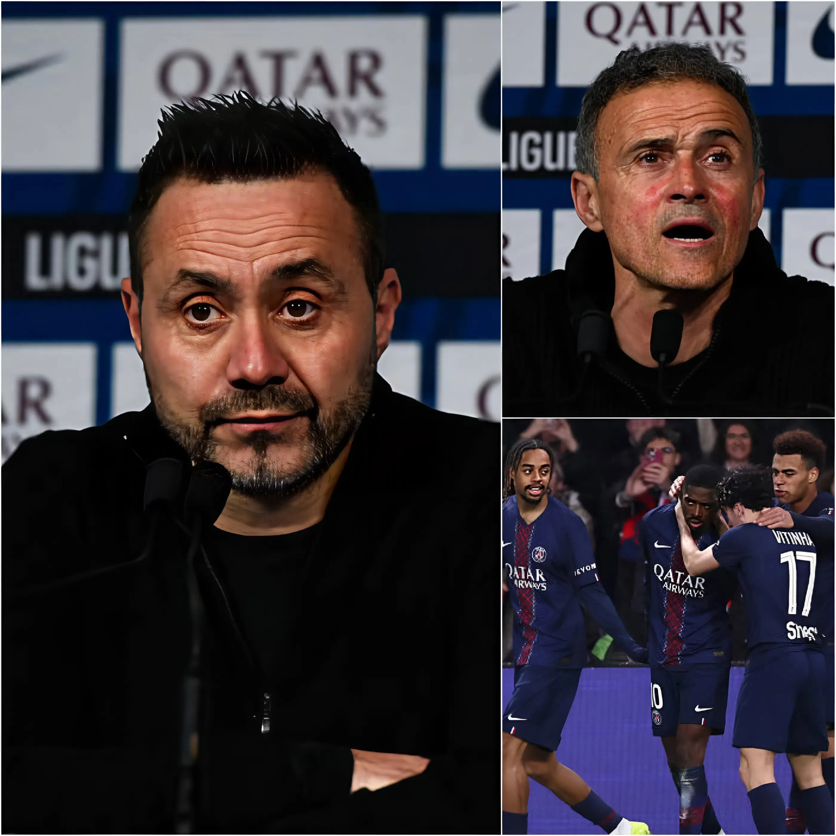 Dans le camp parisien, l’heure n’était pourtant pas à la polémique. Les joueurs célébraient une victoire qu’ils considéraient comme maîtrisée, tandis que Luis Enrique, fidèle à son habitude, affichait un calme presque déroutant. Pendant plusieurs minutes, l’entraîneur du PSG a ignoré les déclarations de De Zerbi, laissant ses joueurs savourer leur succès et les analystes débattre de la rencontre.