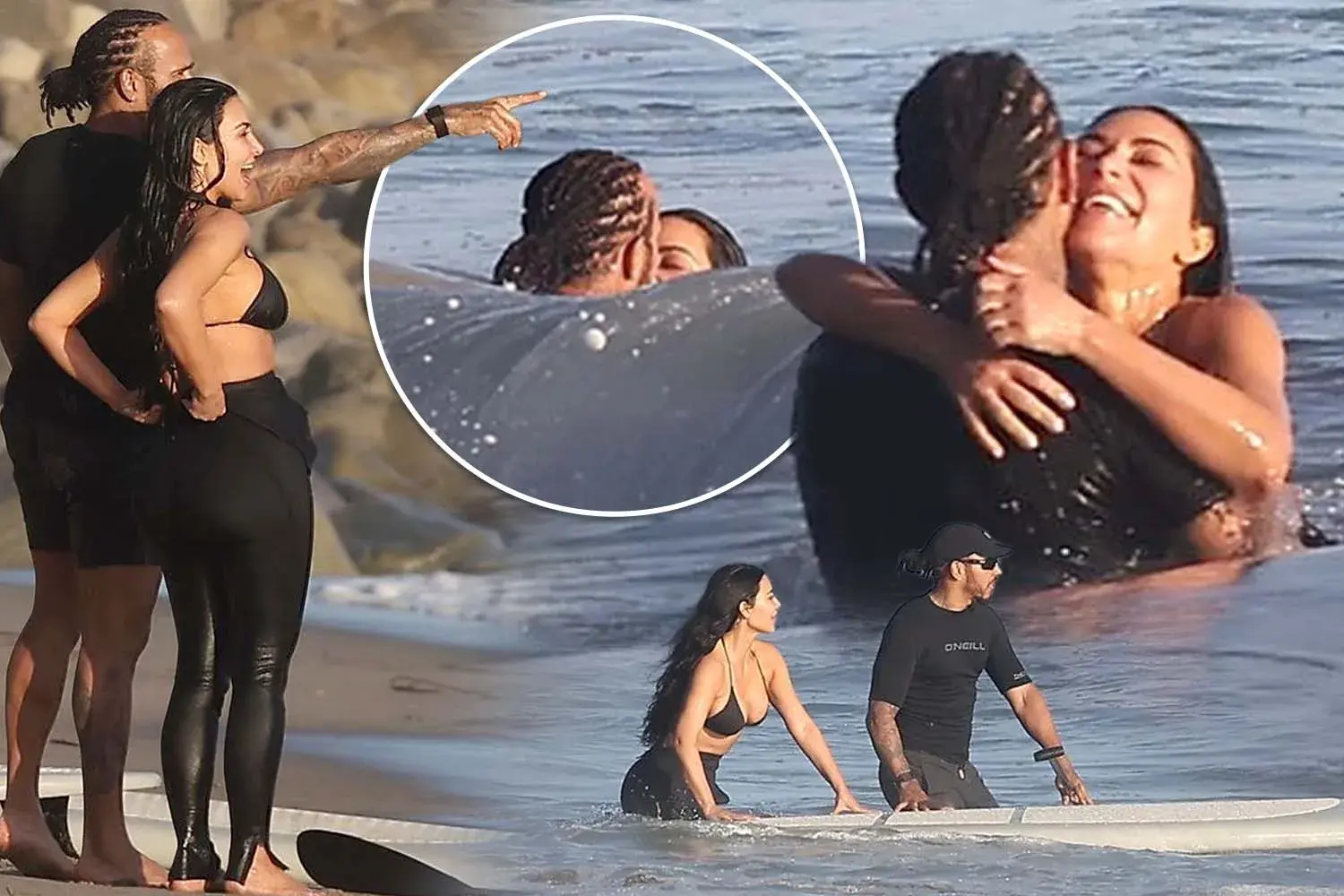 The duo was spotted enjoying a day of surfing in Malibu, an activity that has previously been far removed from their usual public personas. Kim, known for her fashion-forward appearances and business ventures, and Lewis, one of the most successful Formula 1 drivers of all time, seemed to bond over something unexpected: surfing. Their time on the waves was captured by paparazzi and shared widely across social media, immediately going viral. But it wasn’t just the sight of Kim in a wetsuit alongside Lewis that captured people’s attention—it was what happened on that surfboard that has everyone talking.