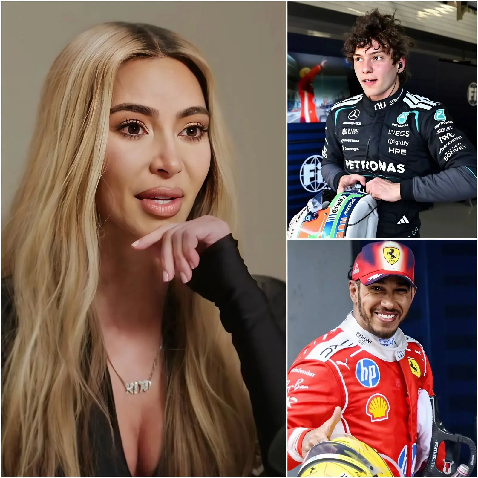 The reality TV mogul and entrepreneur confidently declared to media outlets that the young Mercedes driver’s win was “just luck,” asserting that if Lewis Hamilton had been behind the wheel of an equally competitive car, the seven-time champion would have “definitely taken first place.” The comment, delivered with Kardashian’s trademark poise during a post-race interview segment, quickly went viral—sparking backlash from fans, pundits, and insiders who saw it as dismissive of Antonelli’s impressive performance.