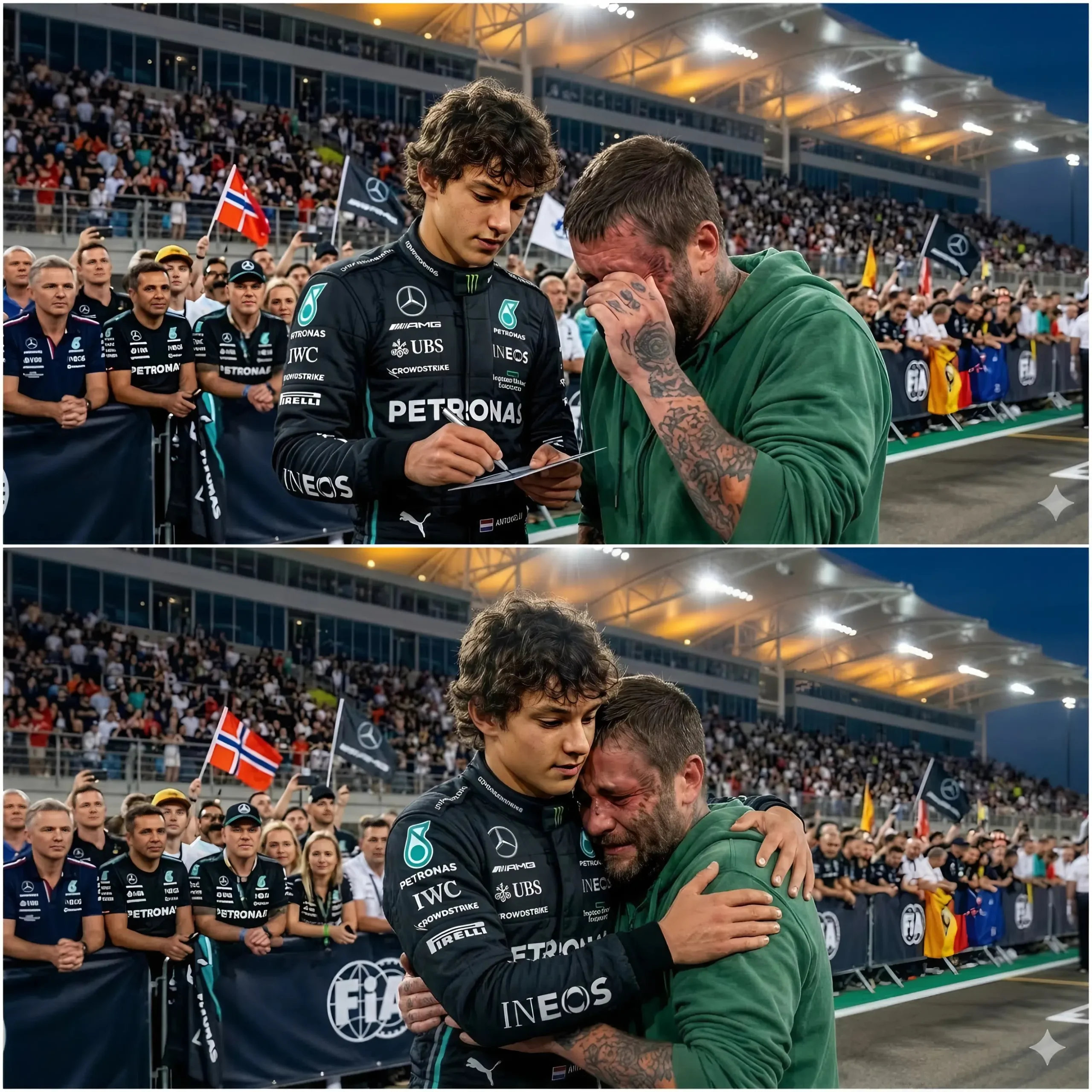 🚨 Het beveiligingspersoneel stond op het punt hem tegen te houden, maar Max Verstappen schudde zijn hoofd en zei: β€œLaat hem dichterbij komen.” Een man met versleten sneakers en een vervaagde pet probeerde wanhopig een handgeschreven brief te overhandigen terwijl de Nederlandse coureur fans begroette tijdens een ontmoeting met het publiek van Formula One.