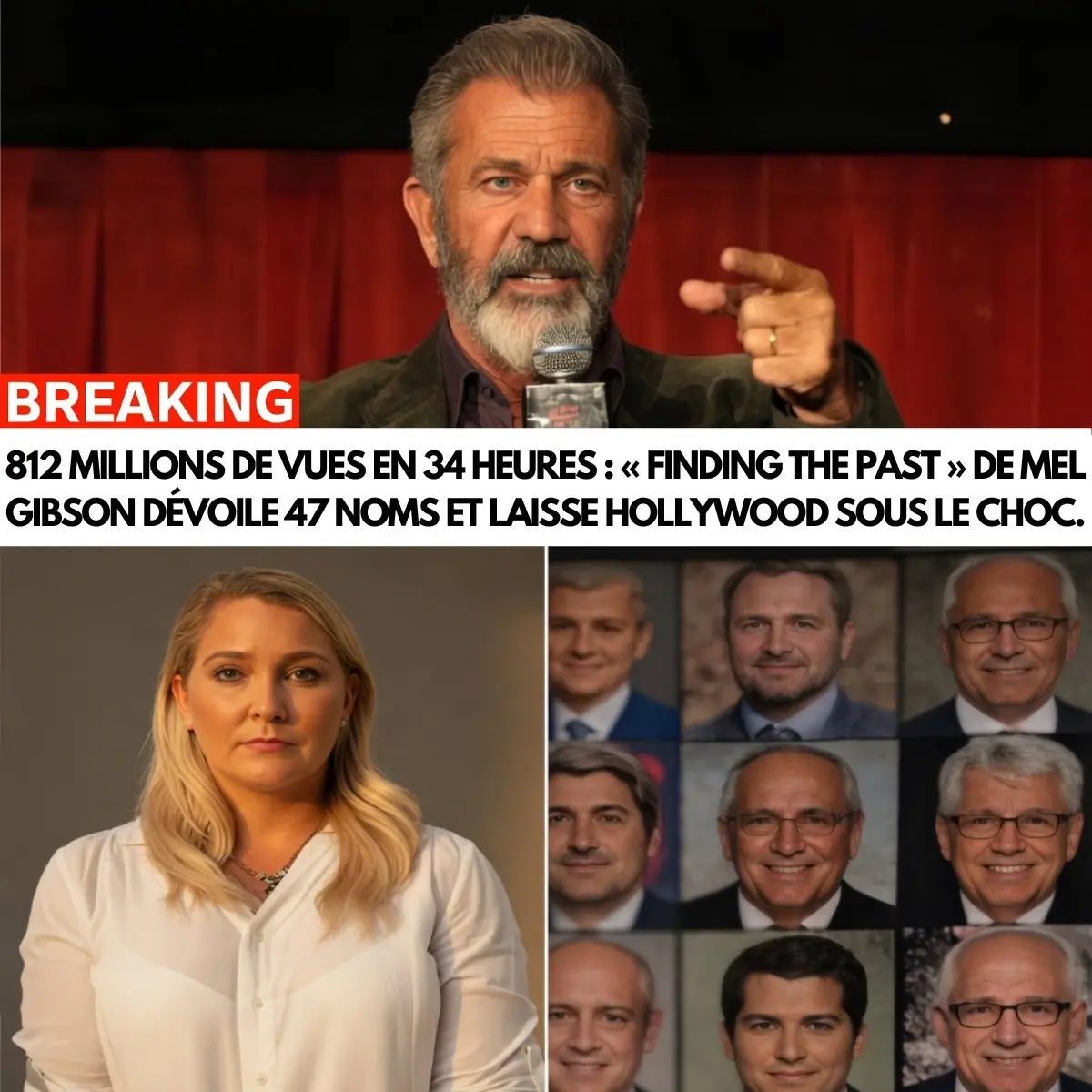 Hollywood n’avait rien vu venir, et pourtant, en l’espace de quelques heures, tout a basculé. Le nouveau documentaire explosif de Mel Gibson, intitulé Finding the Past, s’est imposé comme un véritable séisme médiatique, cumulant un chiffre vertigineux de 812 millions de vues en seulement 34 heures après sa mise en ligne. Une performance presque irréelle, qui dépasse de loin les standards habituels des productions numériques, même les plus virales. Mais au-delà des chiffres, c’est surtout le contenu du film qui déclenche une onde de choc sans précédent dans l’industrie du divertissement.