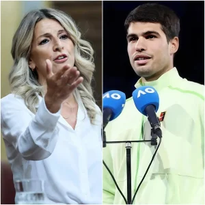 “¿Quién te crees que eres? ¡No eres más que un payaso disfrazado de tenista! ¡Además de perseguir una pelota de tenis, no aportas nada a la sociedad! ¿Qué haces en este deporte estúpido?” Estas palabras de Yolanda Díaz han sacudido profundamente al mundo de la política y el deporte español, provocando una tormenta mediática completamente inesperada, especialmente justo después de que Carlos Alcaraz conquistara el Australian Open 2026 de forma histórica, completando el Grand Slam de carrera. Sin embargo, solo unos minutos después, el tenista Carlos Alcaraz tomó el micrófono, miró directamente a la cámara y, con solo 12 palabras frías y cortantes, respondió de una manera que dejó en silencio absoluto al mundo entero. Esas 12 palabras no solo hicieron palidecer a Yolanda Díaz y la hicieron llorar desesperadamente, sino que también la dejaron completamente muda, obligándola a abandonar el escenario en una atmósfera pesada, llena de vergüenza y humillación…