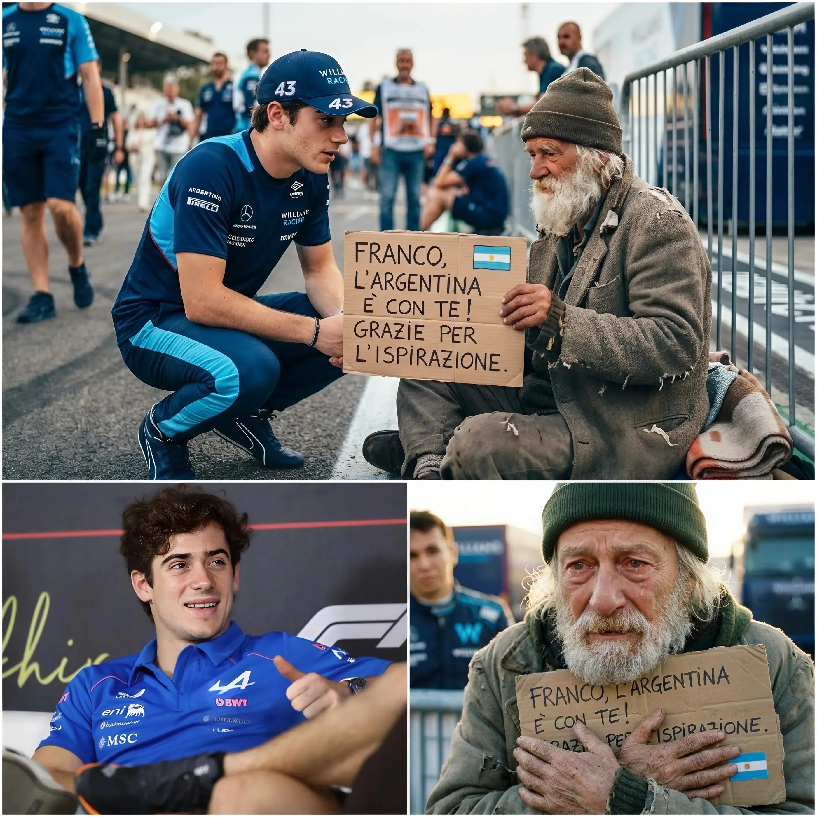 Después de leer el mensaje, Colapinto levantó la mirada hacia el hombre y le agradeció con un gesto amable. Algunos testigos también mencionaron que el piloto intercambió unas breves palabras con él antes de despedirse.