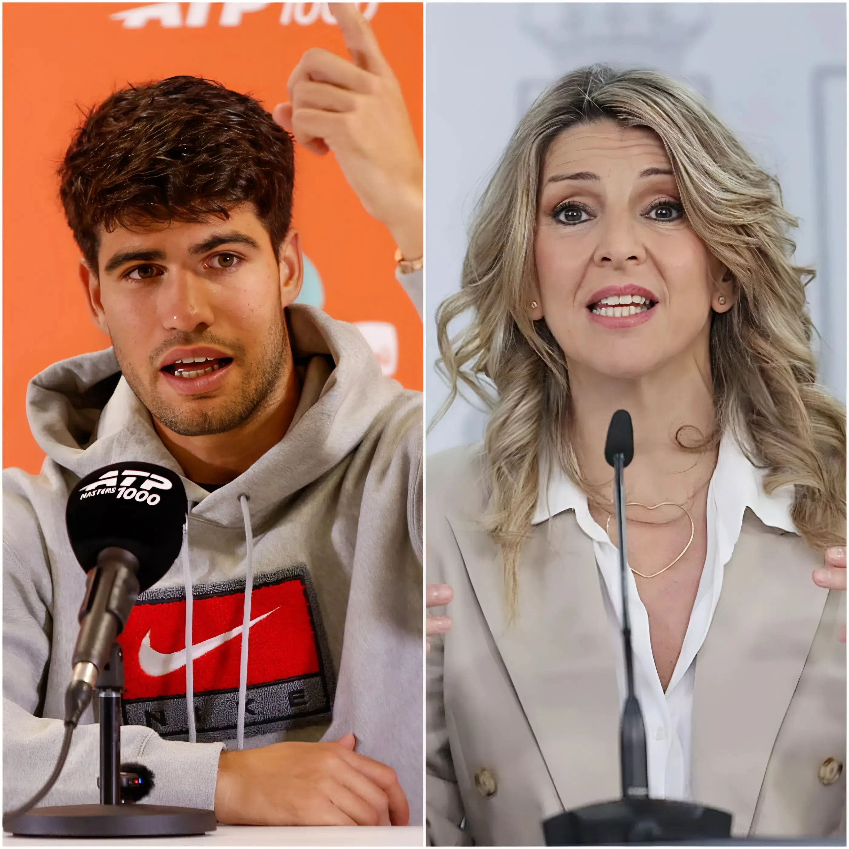 Lo que debía ser una rueda de prensa rutinaria tras un partido intenso terminó transformándose en un enfrentamiento inesperado que nadie vio venir. Alcaraz, aún con la emoción del partido reflejada en su rostro, se sentó frente a los periodistas preparado para responder preguntas sobre su rendimiento. Sin embargo, el ambiente cambió de manera abrupta cuando surgieron comentarios relacionados con declaraciones recientes de Yolanda Díaz, que incluían críticas hacia su entorno personal y sus orígenes.