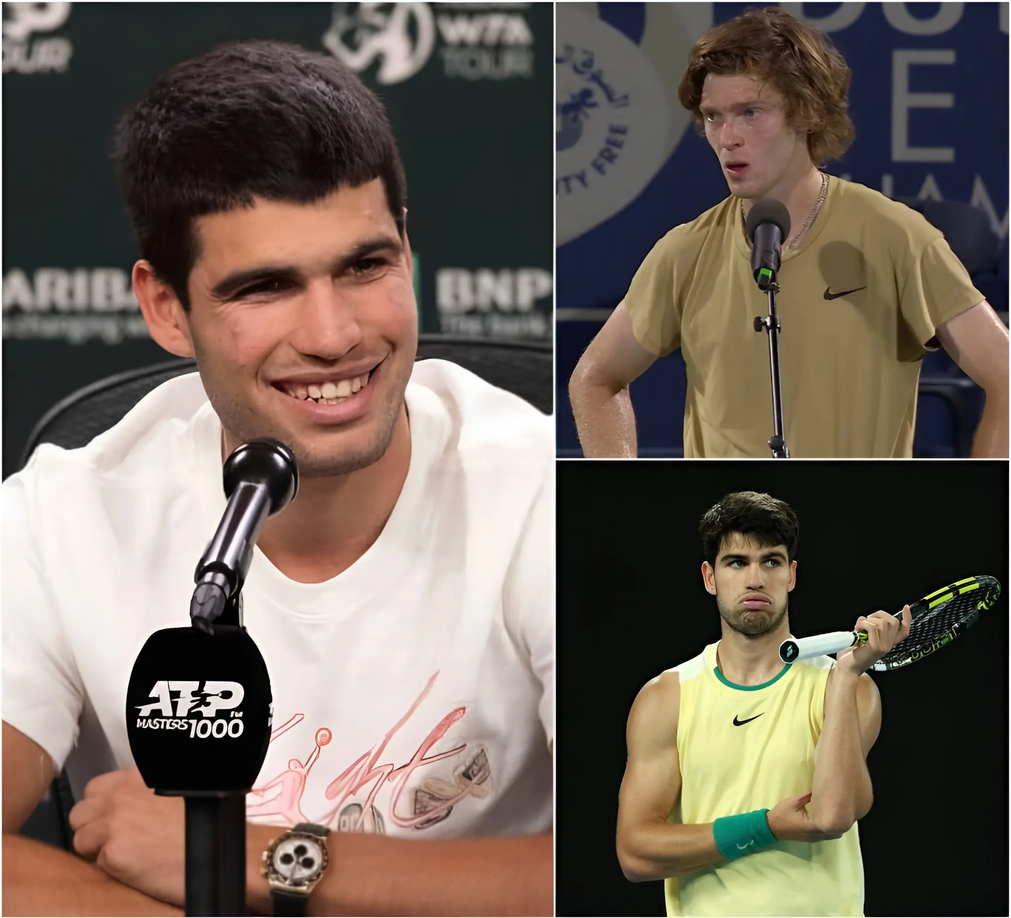 🚨 NOTICIA IMPACTANTE: Tras el partido en el Doha Open, Andrey Rublev sorprendió al declarar que Carlos Alcaraz habría recibido demasiados privilegios por parte de los organizadores, insinuando que el calendario y las condiciones de la pista estaban diseñados para facilitar su camino hacia la final y aumentar el atractivo mediático del torneo. Sus palabras sacudieron el mundo del tenis y despertaron dudas sobre la equidad de la competición. Alcaraz no guardó silencio y respondió con una frase contundente que dejó a toda la sala de prensa completamente atónita. El drama en Doha está más encendido que nunca.