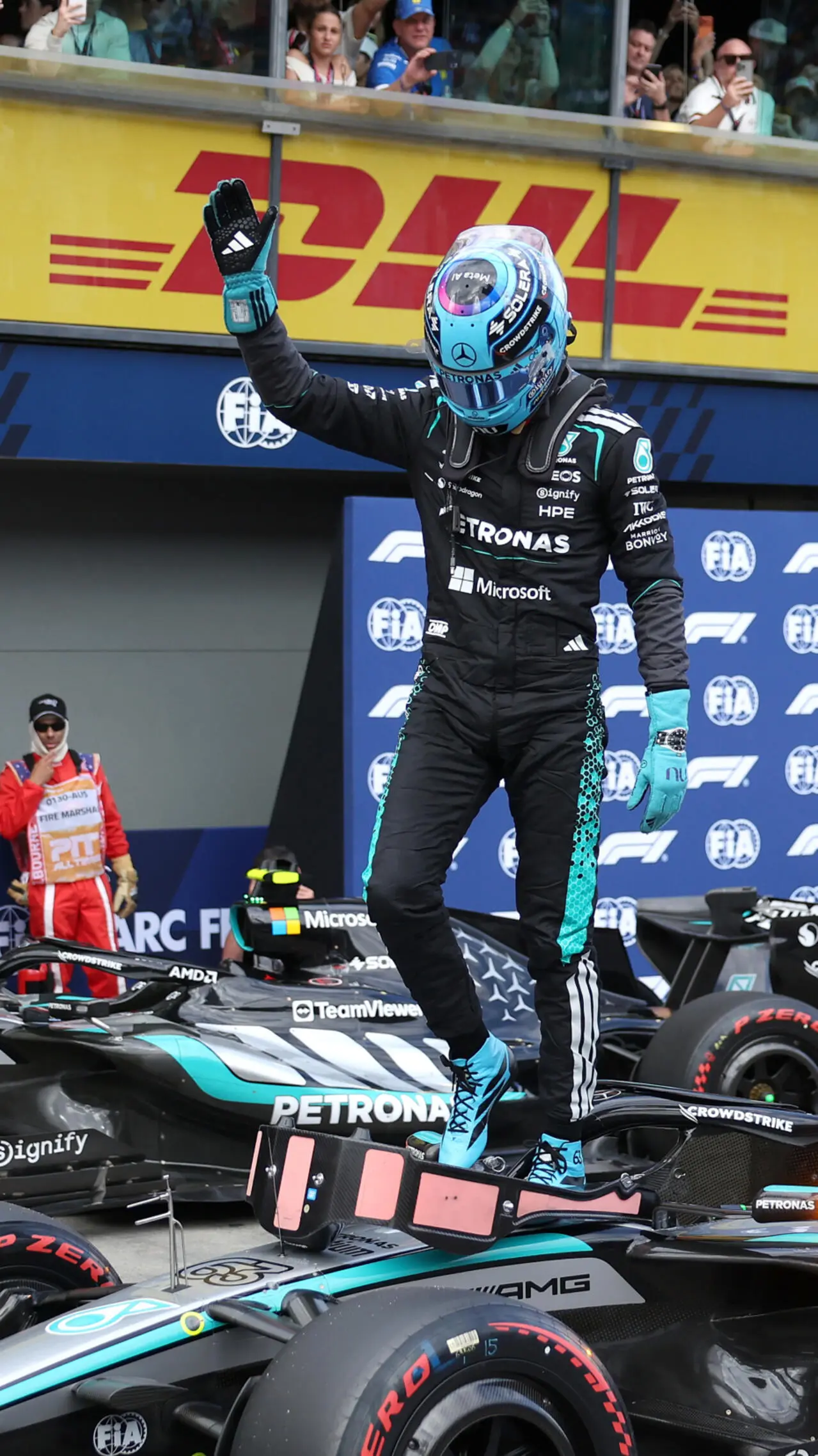 The Australian Grand Prix podium celebration felt strangely muted. Russell raised the trophy, but the questions hanging over Mercedes’ performance were louder than the cheers.