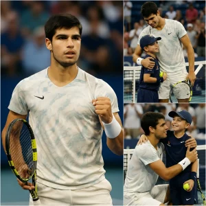 Un momento que hizo llorar a millones de aficionados al tenis en todo el mundo ❤️ Tras derrotar a su rival en el ATP Doha Open 2026, Carlos Alcaraz no celebró de inmediato, sino que corrió hacia un joven recogepelotas que estaba cerca de la red: se arrodilló suavemente, lo abrazó y le regaló su gorra y una pelota firmada. Una sola frase de Carlitos cambió la vida del niño para siempre… Todo el estadio quedó en absoluto silencio y, segundos después, estalló en una ola de emoción indescriptible.