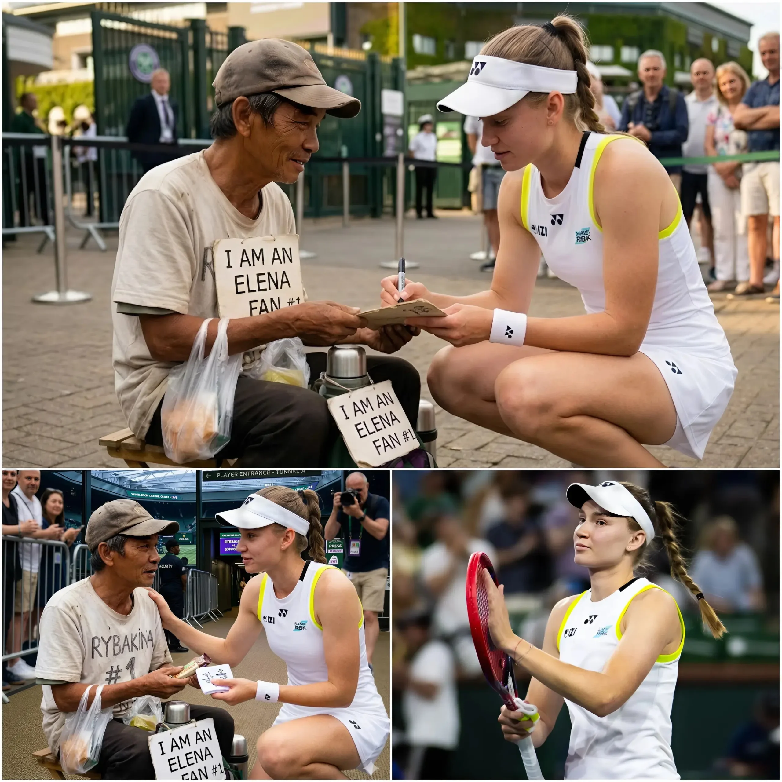 💥💔 Security personnel tried to stop him, but Elena Rybakina shook her head and said, “Let him come closer.” A man wearing worn sneakers and a faded baseball cap tried to hand her a handwritten note while Rybakina was greeting fans during a meet-and-greet.