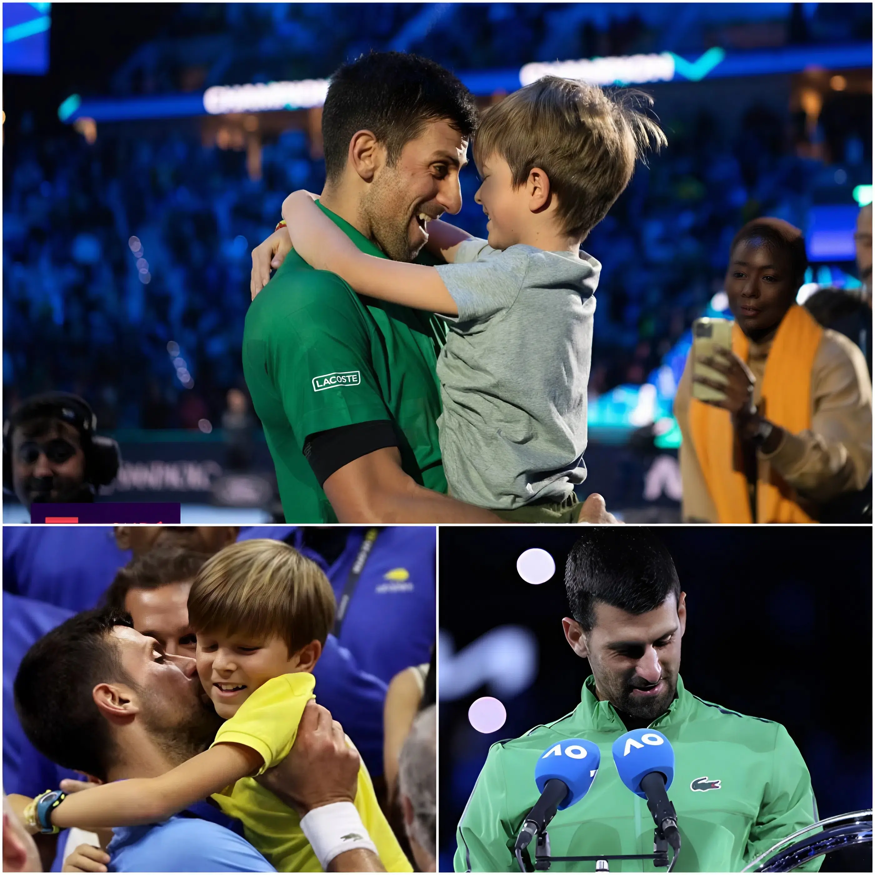 💔 « Papa, je suis là, s’il te plaît, ne pleure pas. » Après sa défaite à l’Open d’Australie 2026, Novak Djokovic a dû faire face à une vague de critiques sévères de la part des fans, ainsi qu’au risque bien réel d’une blessure pouvant mettre fin à sa carrière à l’âge de 38 ans. En voyant son père assis en silence dans le vestiaire, la tête baissée et les mains tremblantes sous la douleur et la pression, le jeune fils de Djokovic a couru vers lui, l’a serré très fort dans ses bras et a murmuré ces 18 mots qui ont tiré des larmes à toutes les personnes présentes. À cet instant précis, tous les titres, toutes les polémiques et toutes les critiques venant de l’extérieur du court sont devenus insignifiants. Novak Djokovic – l’homme autrefois considéré comme « imbattable » – a véritablement pleuré, non pas à cause de la défaite, mais à cause d’une peur qui, pour la première fois, devenait claire : cela pourrait être la fin. À 38 ans, confronté au risque d’une blessure irréversible et aux attaques incessantes venant des tribunes, Djokovic n’était plus la légende aux 24 titres du Grand Chelem… mais simplement un père essayant de rester fort aux yeux de son fils.