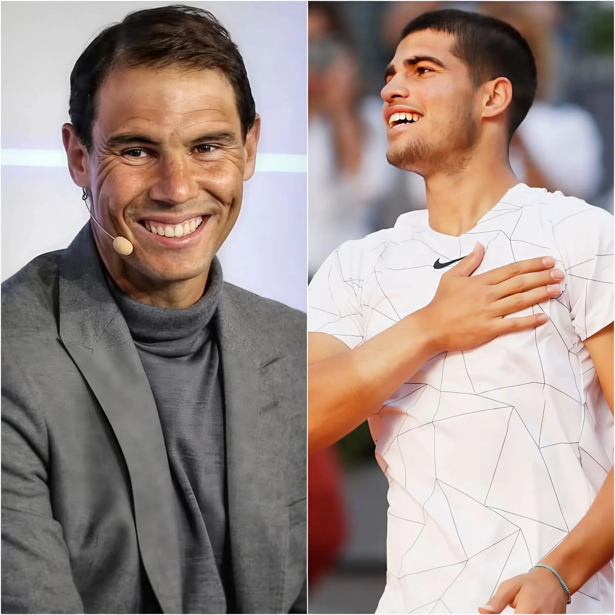 «¡Se lo merece más que nadie!» La frase resonó con una fuerza especial en el auditorio, cargada de emoción genuina y de un simbolismo que iba más allá de un simple anuncio comercial. Carlos Alcaraz, con apenas 22 años, no pudo contener las lágrimas cuando escuchó a Rafael Nadal pronunciar palabras que parecían sellar un momento histórico para el tenis español. Su voz, entrecortada y temblorosa, reflejaba no solo gratitud, sino también el peso de la responsabilidad que implica recibir el respaldo de una leyenda viva del deporte.