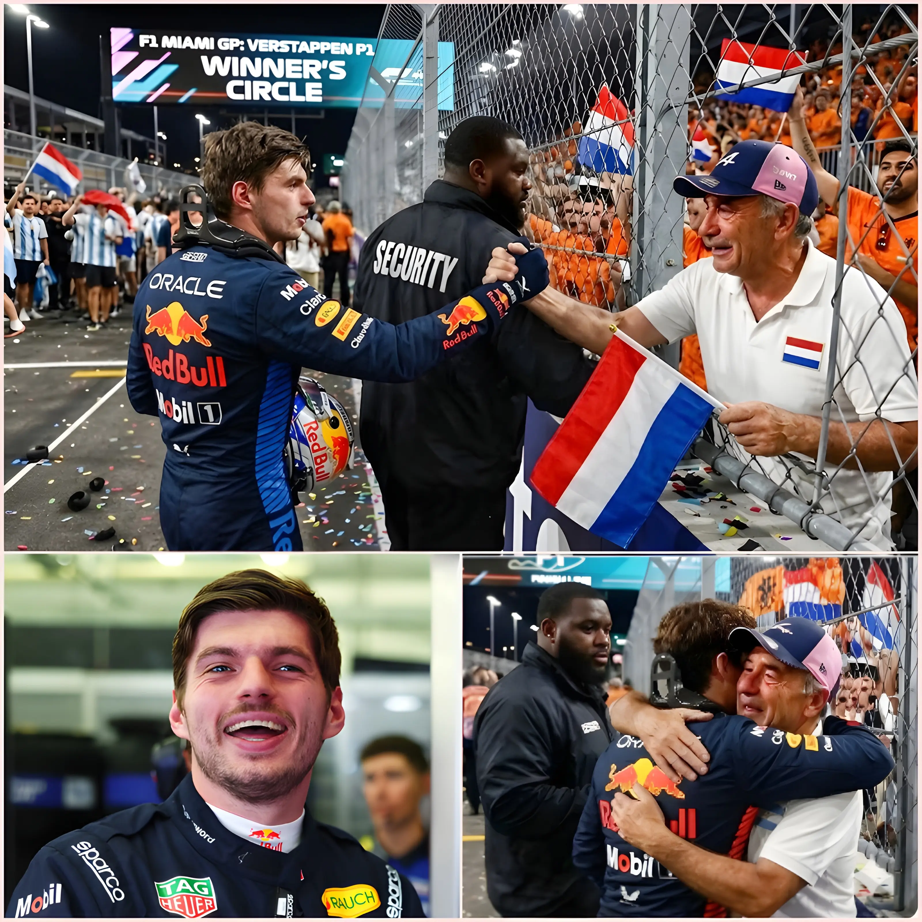Yet Verstappen’s steady gaze and gentle smile signaled something different. He clearly wanted to hear what the older fan had to say. Team members, security staff, and hundreds of spectators filming on their phones watched in stunned silence as the man was finally allowed to approach the Dutch driver.