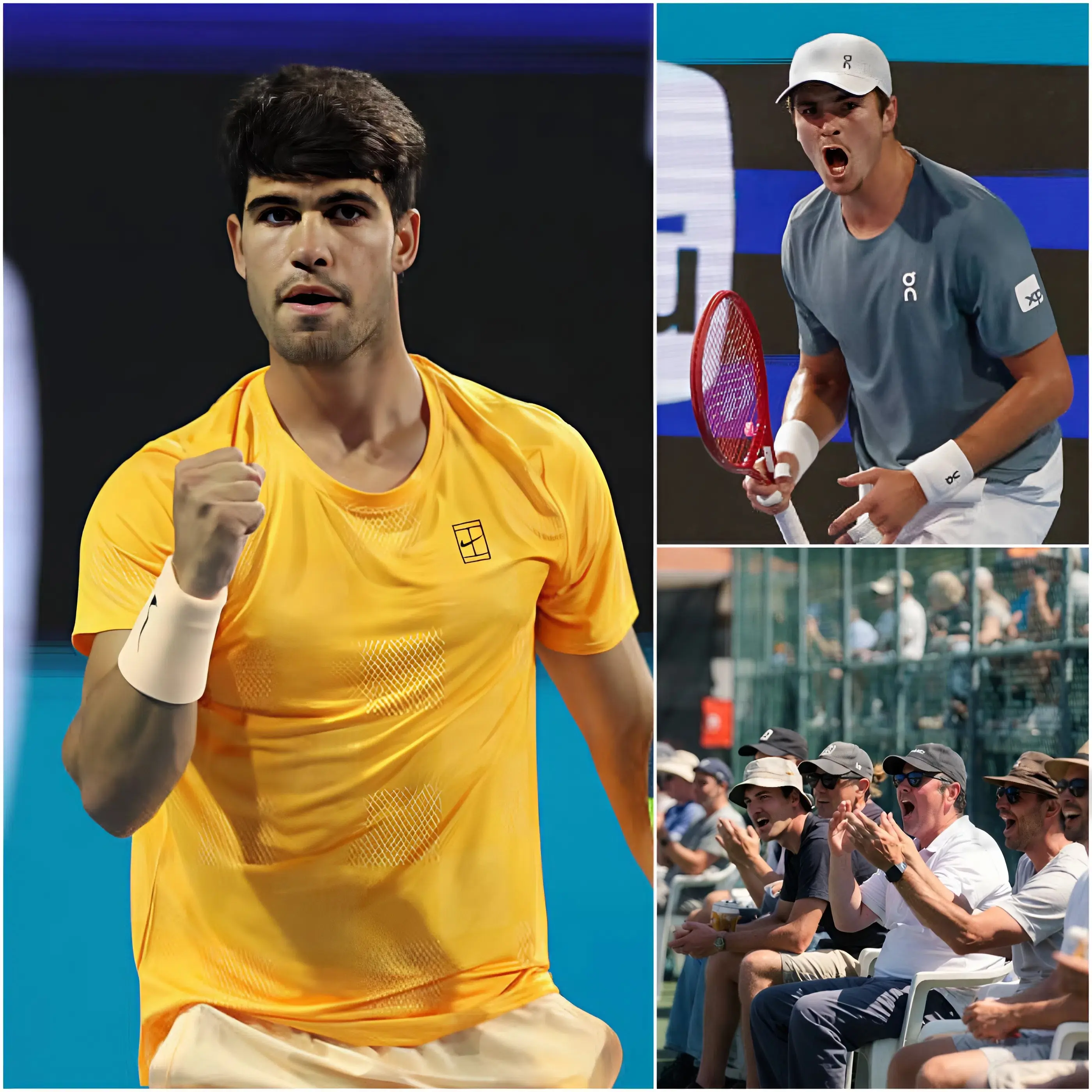 Amid the chaos, all eyes turned to Alcaraz. Known for his composure and maturity beyond his years, the young Spaniard stood near the baseline, taking in the overwhelming reaction. Cameras zoomed in, capturing every detail of his expression as the noise intensified around him.