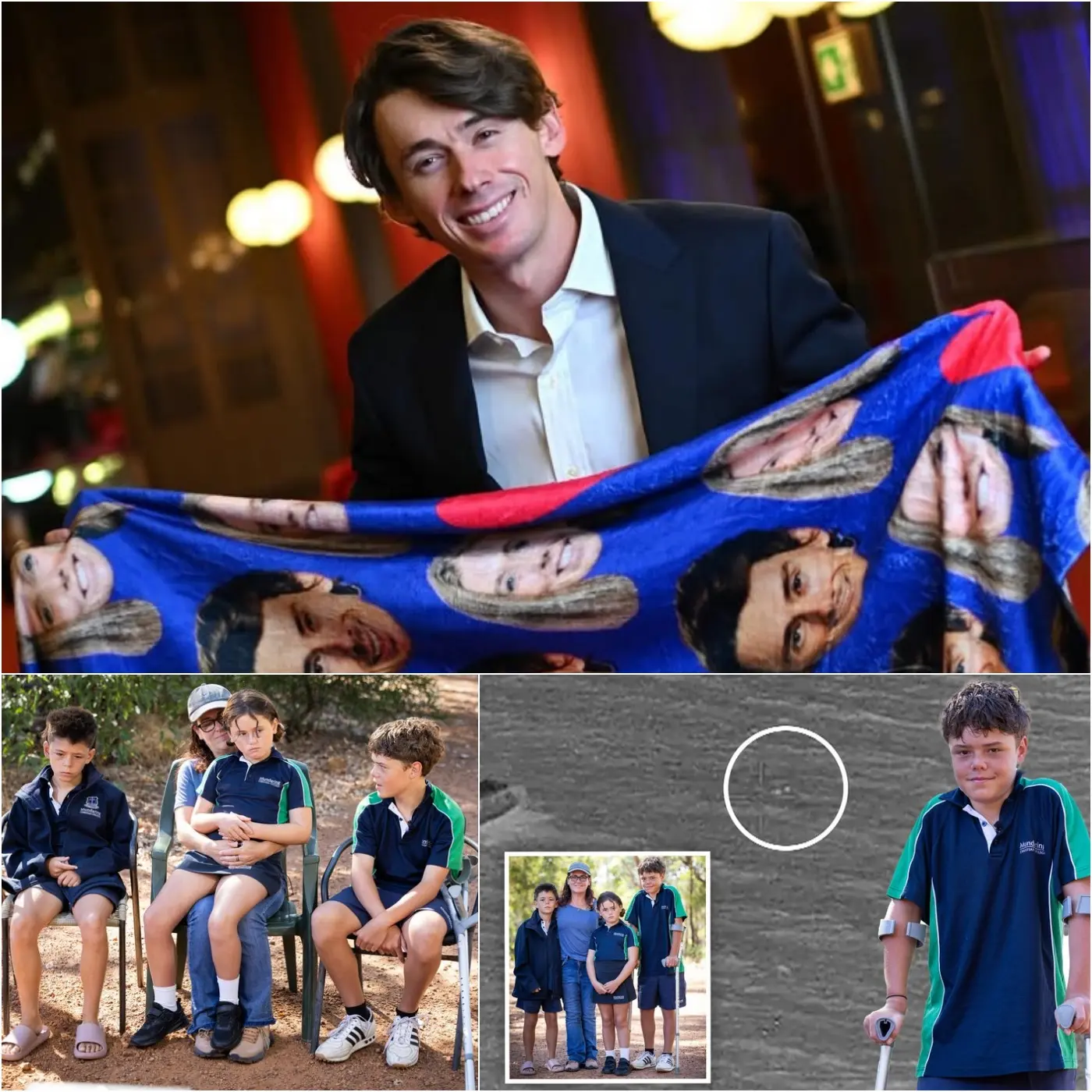 The background is already legendary. On January 12, 2026, the Appelbee family’s small fishing boat capsized in unexpectedly strong currents near Jurien Bay. Austin’s mother, Sarah, 38, suffered a severe leg injury and could not swim. His younger brother Ethan, 8, and sister Mia, 6, were clinging to the overturned hull, terrified and exhausted. Without hesitation, Austin—already known in his small community for his exceptional stamina from school swimming trials—jumped into the cold water and began towing his family toward shore.