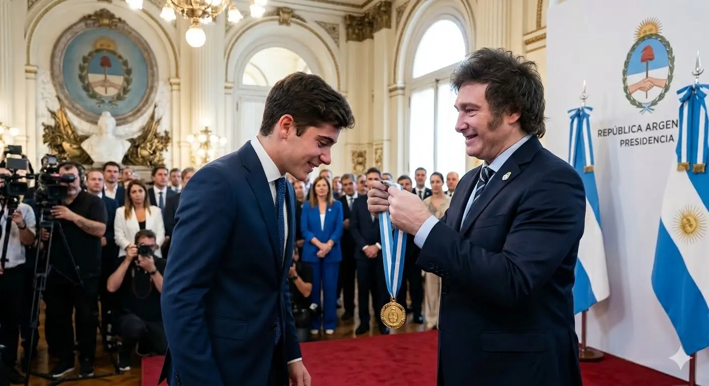 Tras agradecer brevemente a su equipo, a su familia y a sus seguidores, Colapinto hizo algo inesperado. Dirigió su mirada hacia la primera fila, donde se encontraba el presidente de Argentina, Javier Milei. Ese gesto cambió por completo la atmósfera del evento. Lo que hasta entonces había sido un discurso protocolario se convirtió en una declaración profundamente personal. Su voz tembló al continuar, y al bajar la cabeza, las lágrimas comenzaron a caer en silencio, marcando un punto de quiebre emocional que nadie en la sala pudo ignorar.