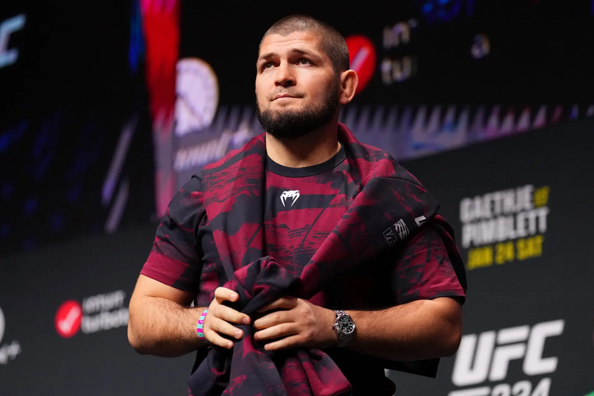 The scene unfolded during what was initially expected to be a routine public appearance. Khabib, now retired from professional competition but still deeply involved in coaching, promotion, and athlete development, had taken the stage to discuss the future of MMA, mentorship, and his ongoing projects. Calm, composed, and measured as always, he spoke about discipline, faith, and responsibility — the pillars that defined both his career and his post-fighting life.