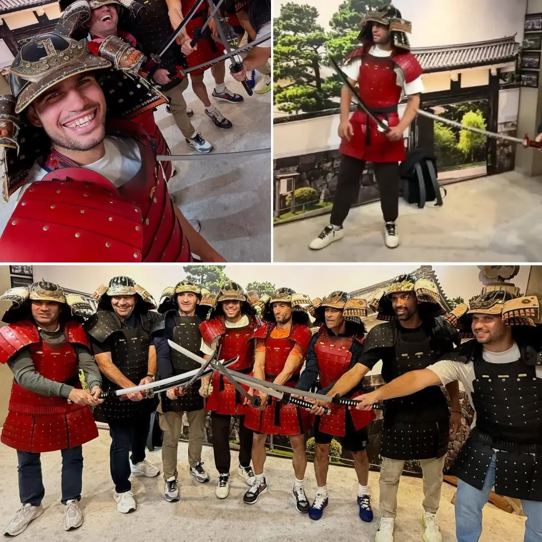 What began as a private cultural visit quickly turned into something far more unusual. Witnesses claim Alcaraz and several members of his team participated in a guided samurai-style experience organized by the temple, complete with traditional robes, rituals, and even sword demonstrations.
