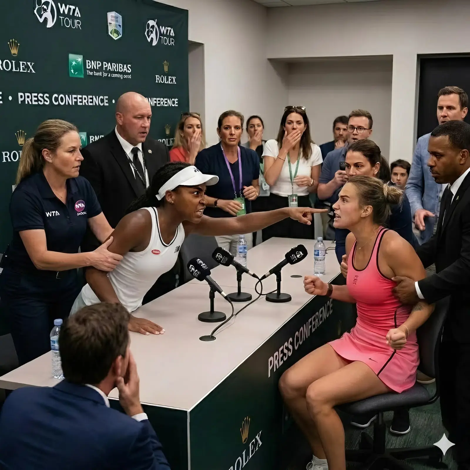 Selon plusieurs témoins proches de la piste, Gauff aurait suggéré que Sabalenka utilisait une sorte de technologie illégale intégrée à son équipement. Même si aucune preuve immédiate n’a été apportée, la force de ses propos a suffi à provoquer une réaction immédiate de la part des officiels du tournoi.