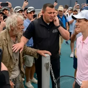 Il personale di sicurezza stava per fermarlo, ma Jannik Sinner alzò con calma la mano e disse: “Lasciatelo avvicinare.”Un uomo sulla sessantina, con scarpe consumate