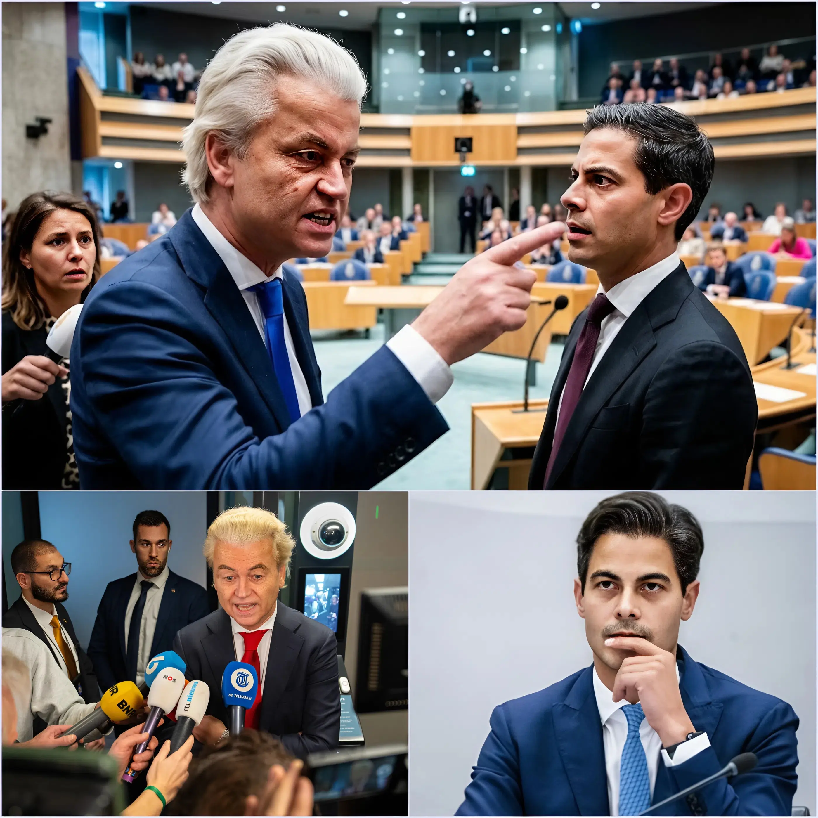 Wat volgde was een ongekend moment van parlementaire theater. Terwijl tientallen camera’s de gebeurtenissen registreerden voor live-uitzendingen, stond Wilders langzaam op, liet zijn handen een dramatische gebaar maken en begon een verklaring die zijn beschuldigingen nog eens kracht bijzette. Hij sprak over vermeende belangenconflicten, het manipuleren van publieke opinie en het benutten van politieke macht om persoonlijke winst te behalen. “Wij, als volksvertegenwoordigers, mogen nooit toestaan dat politieke spelletjes de samenleving schaden,” benadrukte hij, terwijl de zaal in stilte luisterde.