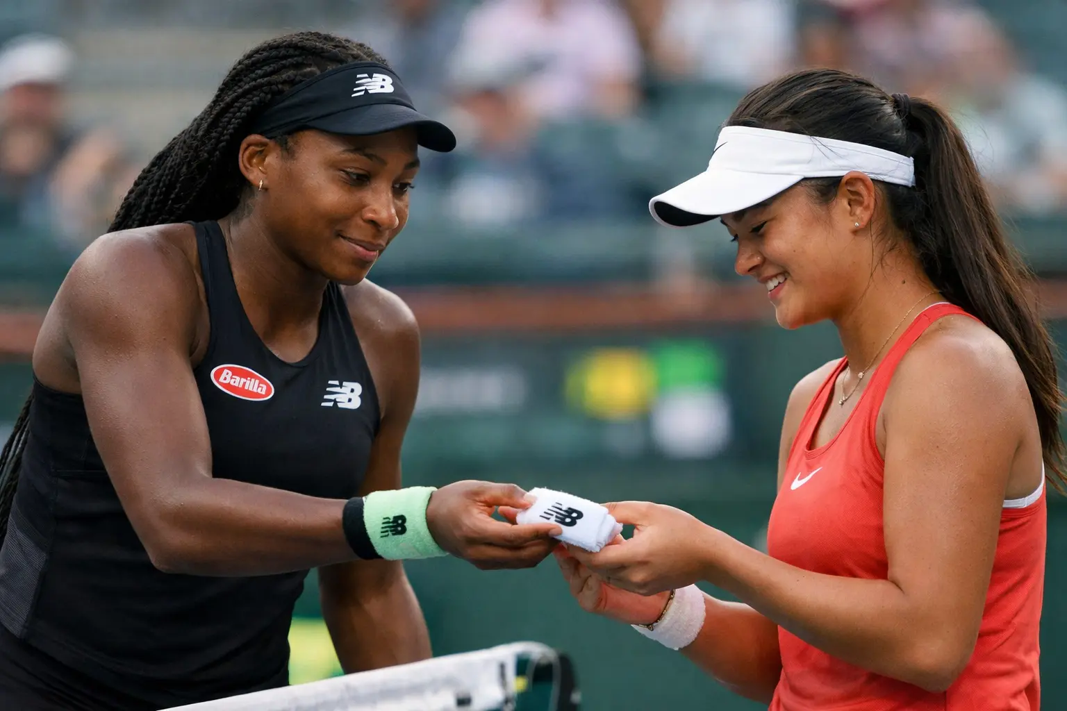 Before leaving the court, the American star added a final, symbolic act. She removed the sweat-soaked wristband from her right wrist and placed it carefully into Eala’s hand. It was a simple object, yet the meaning behind the gesture carried immense emotional significance.